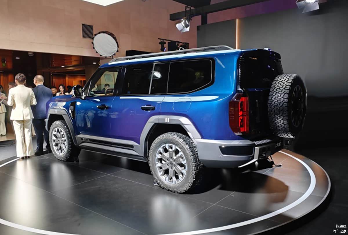 车尾部分,新车使用了侧开式的后尾门设计,带有背挂式的备胎。尾灯造型轮廓很简洁,内部的光源结构有着不错的精致感。后杠造型和前杠相呼应,视觉效果很粗犷硬朗。尺寸方面,新车的长宽高分别为5198/2050/1936mm,轴距为3100mm。