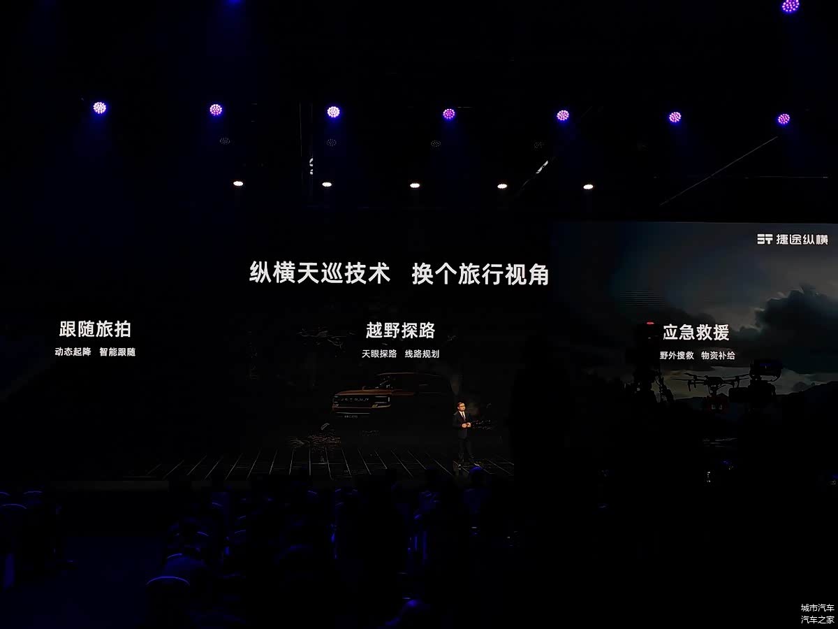 和比亚迪唐L一样,捷途纵横也把无人机“搬上车”,不光可以旅行随拍、越野探路,遇到紧急情况还能协助搜救或进行物资补给,这也是未来高端电车的重要发展方向。