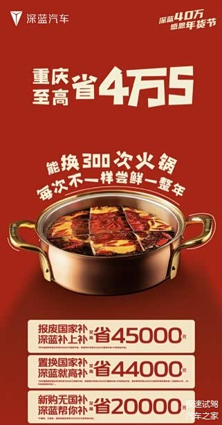 2025 年的新年钟声已经敲响,这是一个充满希望与机遇的时刻。不要让购车的犹豫成为你新年出行的阻碍,不要错过深蓝汽车为你带来的这份新年惊喜。现在,就抓住这个难得的机会,选择一辆深蓝汽车,开启你的新年精彩旅程。让深蓝汽车陪伴你,在新的一年里,驶向更加美好的未来。买辆深蓝回家过年,让这份贴心的座驾,为你的新年增添更多欢乐与温暖,赶紧行动起来吧!