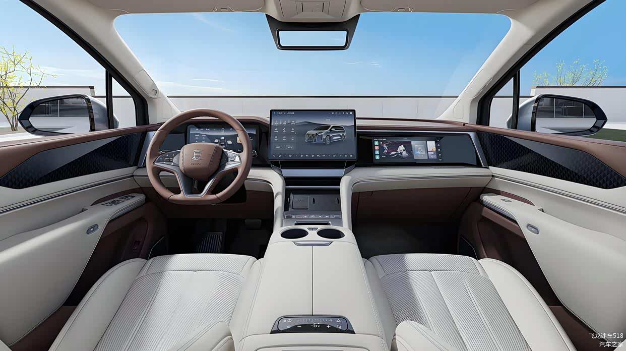 比亚迪夏采用了环抱式的座舱,以中国庭院布局中的“四水归堂”为灵感,有着“四方之水归于一堂”的寓意,象征着财富与福气的汇聚。大面积软性材质的铺陈,低饱和度的色调,再加上柔软细腻的质感,不仅带来了视觉上的享受,触感柔软细腻,更显高级质感。中控台采用了标准的T字形布局,配备了更加抓人眼球的三块液晶大屏,包括嵌入式的全液晶仪表、悬浮式中控屏、以及副驾娱乐屏。配备DiLink 150智能座舱,支持三屏联动影音娱乐播放、智能语音多车畅联、手柄游戏、AR眼镜等潮玩应用,并首搭DiSound音响系统,拥有高达28个扬声器,32个独立音频通道,搭配车载影院显示屏,带来豪华的视听享受。AR投影感应开启侧滑门/尾门功能,只需携带钥匙,靠近侧滑门/尾门,用脚轻踩地面上的圆形闪光标志,就能打开车门,科技感很强。
