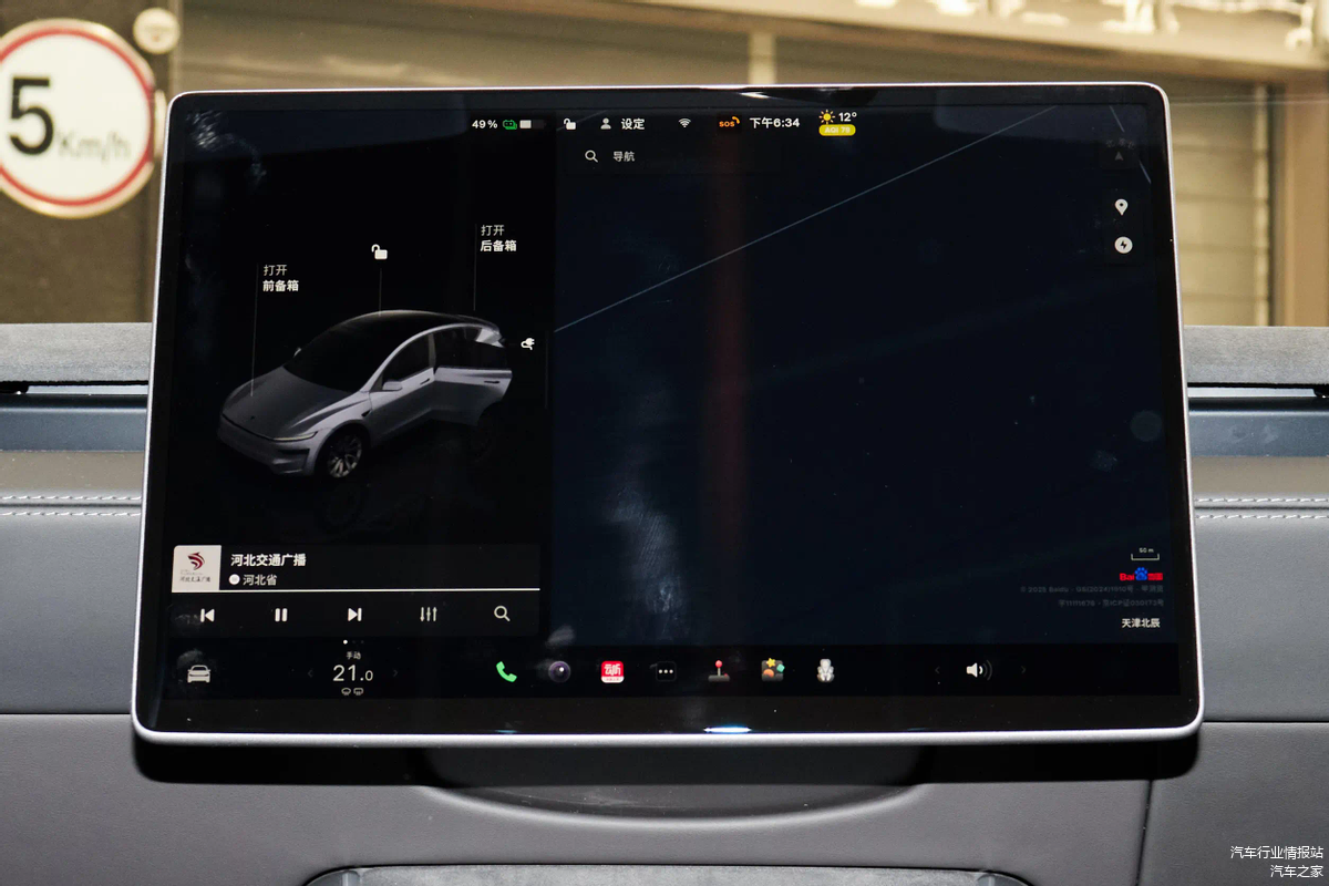 进入车内,新款Model Y同样带来了不少惊喜。中控台上那块超大尺寸的15英寸中控触摸屏尤为醒目,它集成了车辆几乎所有的操控功能,使得整个内饰看起来更加简约而富有科技感。前排座椅新增了通风功能,后排座椅坐垫进行了加长处理,并增添了后排座椅电动调节功能,这些升级无疑提升了乘坐的舒适性。此外,新款Model Y在储物空间方面也做得相当出色,后备箱容积在常规状态下达到854L,当后排座椅全部放倒后,可扩展为2130升的超大平整空间,足以满足用户多元化的装载需求。