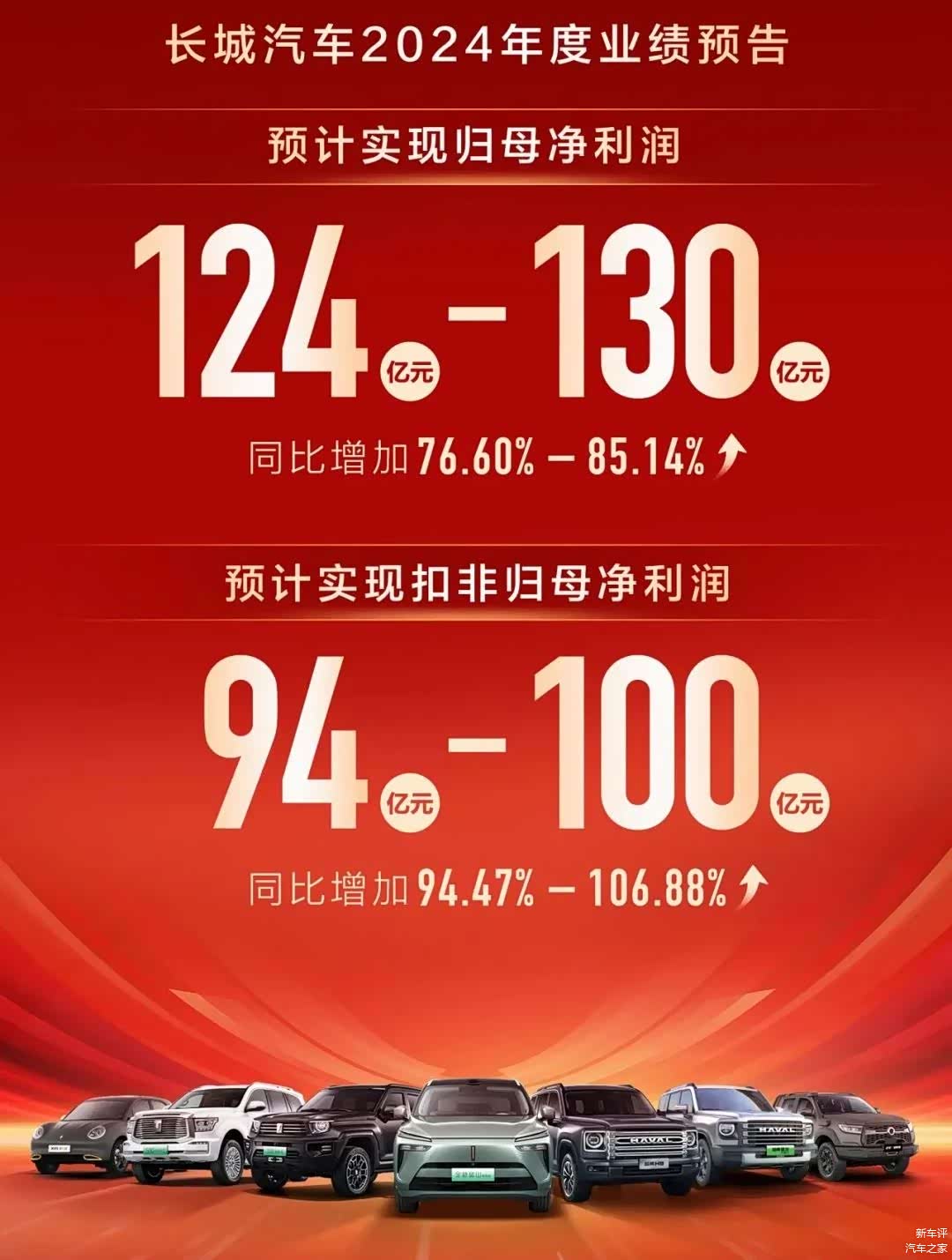 高额年终奖的背后,是长城汽车的高利润,2024年净利润高达130个亿,扣非净利润也能达到100个亿。