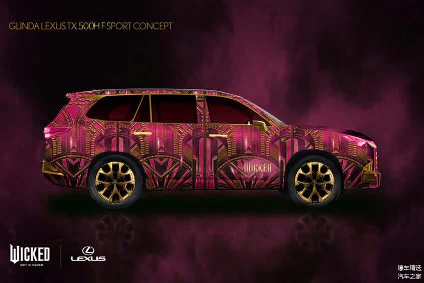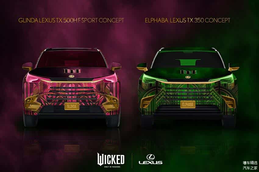 雷克萨斯 设计团队从《魔法坏女巫》中得到灵感,为 TX 打造两款定制特别涂装,其中 Glinda TX 以粉红色为主,而 Elphaba TX 则采用绿色,分别为电影主角 Glinda 与 Elphaba 的代表配色,并在车身各处大量使用金色装饰及图腾,搭配上同样施以金色涂装的专属轮圈,各自展现出独特的个人风格。