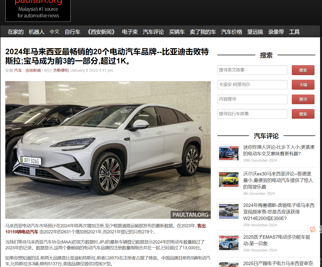 值得注意的是,除了新加坡,在马来西亚,比亚迪销量为8,570辆,位居马来西亚电动汽车销量榜第1位。以8570辆的注册量位居榜首,这个中国品牌目前的阵容中有5款电动汽车,比排名第二的特斯拉多3辆,特斯拉为5,137辆——这个美国品牌在这里只提供Model 3和Model Y,宝马以1,975辆排名第三,是突破1,000辆大关的三个品牌之一。