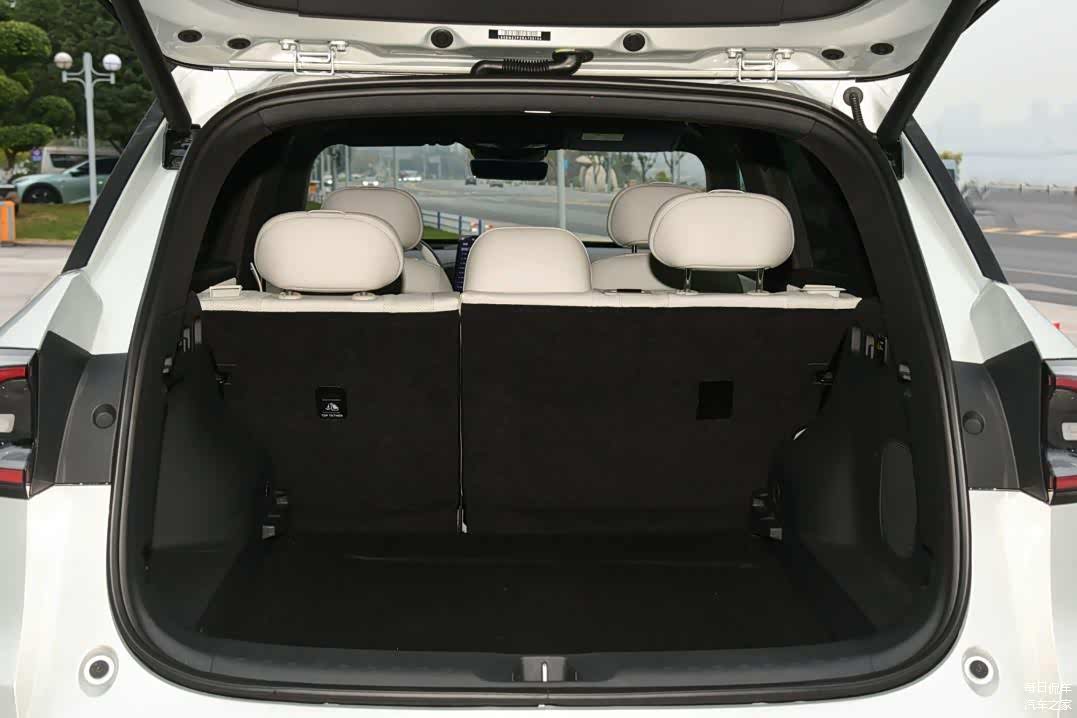 后备箱常规容积达到763L,非常可观。副驾与后排座椅可同时放倒,在右侧形成很长的空间,可放置较长物品。还提供大床模式,将后排座椅放倒,搭配充气床垫,带来2.55*1.45m的平坦空间。