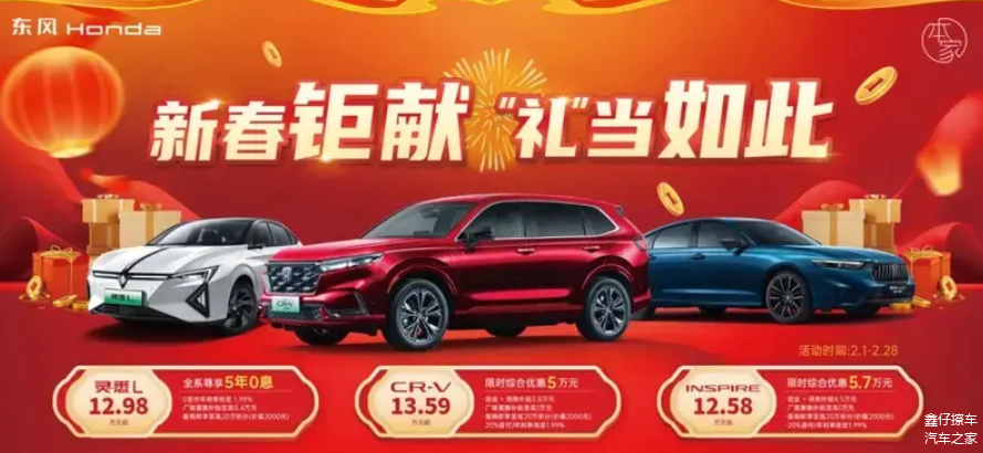 2月5日,东风本田官方宣布2月1日至2月28日,购买灵悉L、CR-V、英仕派三大车型,可享受限时超值福利。购买灵悉L全系可享受5年0息、0首付年利率低至1.99%、厂端置换补贴至高0.4万元、复购即享至高20万积分(价值2000元)。