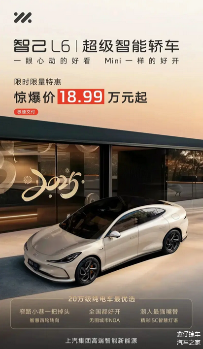 2月5日,智己汽车宣布,即日起至2月28日,智己L6推出限时限量特惠,惊爆价18.99万元起。
