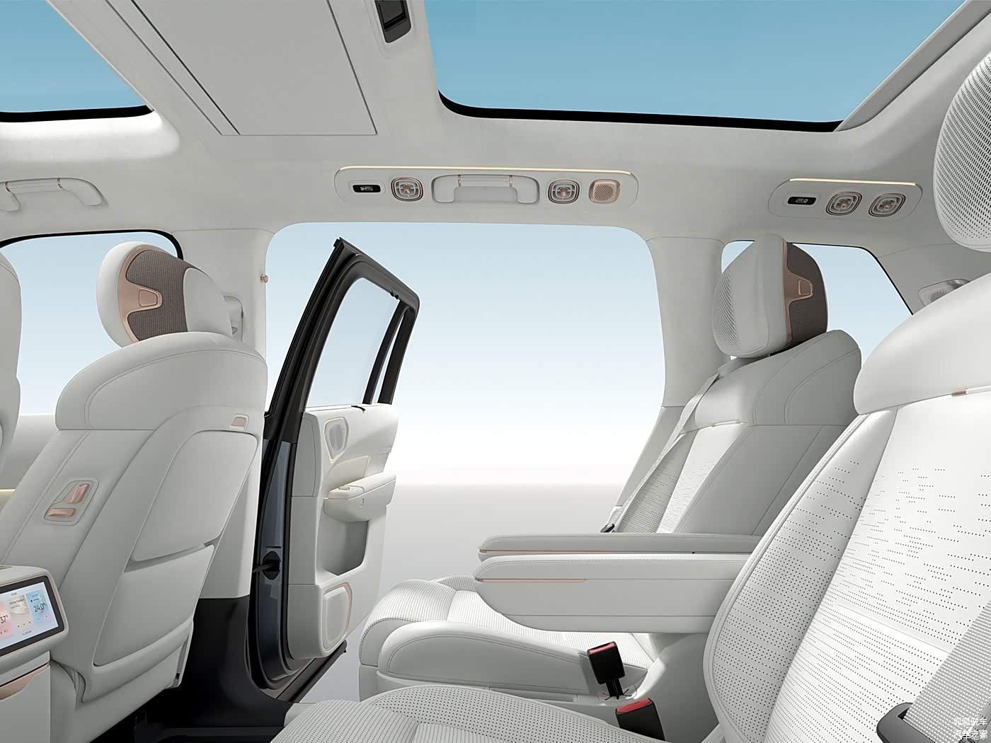 内饰方面,领克 900 通过 “三零”(0 沥青、0 杂棉、0 有害溶剂)环保材质与顶级 Nappa 真皮、水晶饰件的搭配,诠释了豪华与健康的平衡。30 英寸 6K 一体式天际屏与后排悬浮娱乐屏的组合,搭配星钻智控旋钮,构建出沉浸式科技座舱。