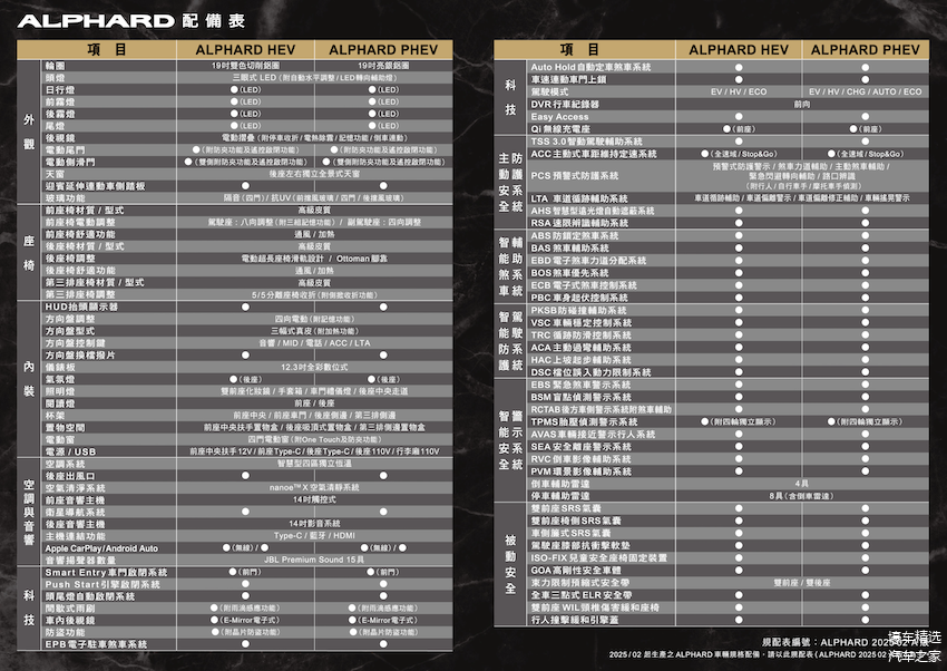 安全配备也相同,皆有 TSS 3.0 智动驾驶辅助系统、6 气囊等。针对 埃尔法 全车系,也新增标配迎宾延伸连动车侧踏板。
