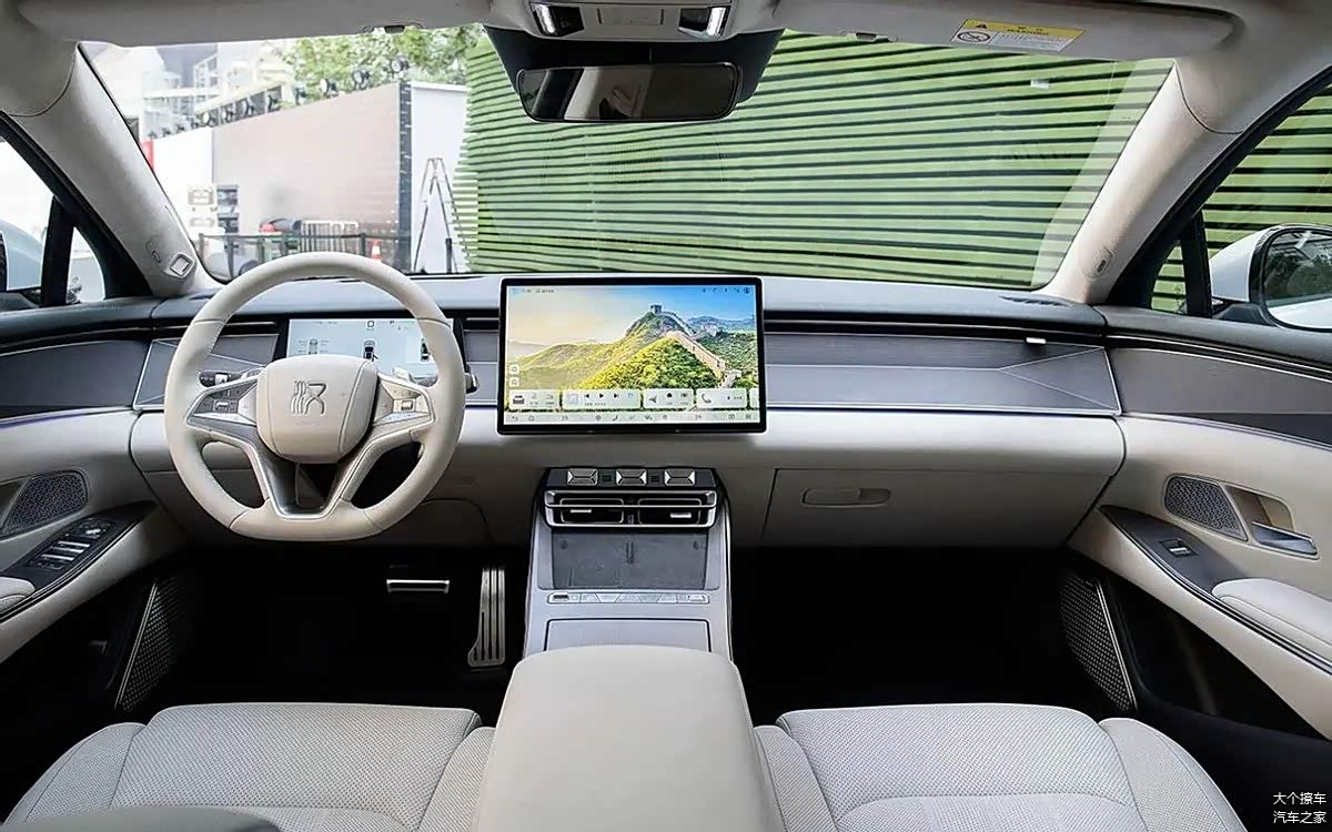 车辆的内部装饰整体给人一种很好的感觉,这是首次以“脊”为设计灵感进行创作。在材料选择上,除了大量使用柔软的材料外,还首次采用了由竹木饰板组成的切割面,展现了中式的豪华审美。