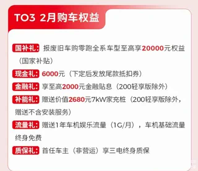 零跑T03的中低配虽然价格便宜,但是性价比上其实反而不如顶配,目前在官方给与6000元现金礼以后,零跑T03 2024款 403舒享版裸车价只需要6.39万元,再搭配报废至高2万元补贴以及2000元金融礼,其裸车价实际上还是很划算,你们觉得呢?