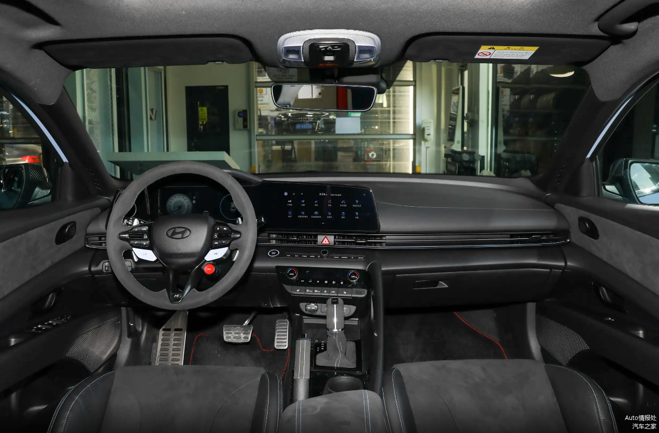 现代伊兰特Elantra N在内饰方面,采用大量翻毛皮材质,符合一个性能车的定位,座椅采用双拼材质,全液晶仪表和中控屏幕的尺寸均为10.25英寸,前排和第二排均提供座椅加热,前桥还提供限滑差速器,悬挂系统还支持软硬调节。