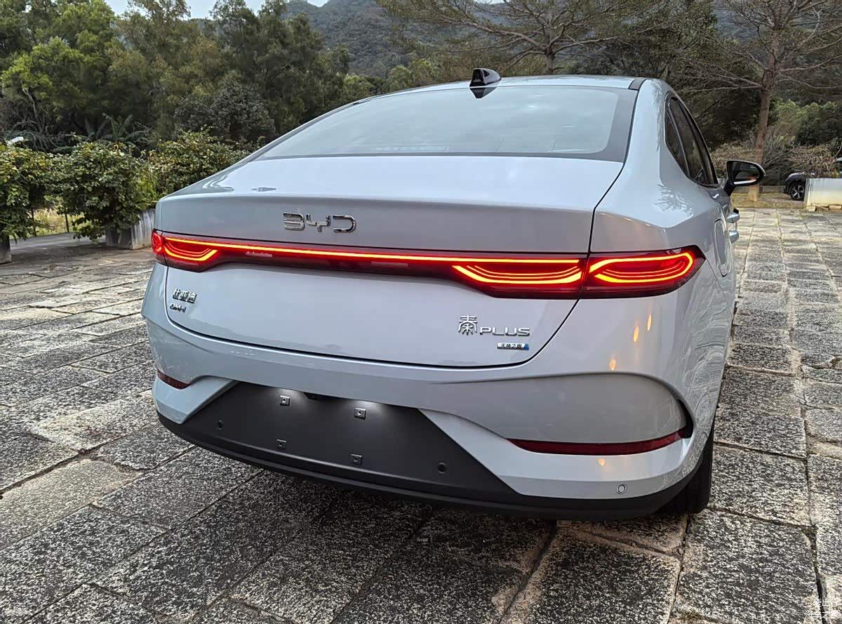 作为中期改款车型,秦PLUS DM-i智驾版在内外设计上均进行了全面革新。新车尺寸为4780/1837/1515mm(长宽高),相较于老款略有增大,但轴距2718mm保持不变,这主要得益于外观部件的优化。前脸部分,龙鳞式镀铬饰条与上扬的线条相结合,熏黑的点缀更添战斗气息,整体呈现出“小秦L”的既视感。车尾则采用了溜背式设计,搭配全新造型的轮毂,有16、17英寸两种尺寸可选。贯穿式尾灯造型与秦L相似,进一步提升了车辆的辨识度。
