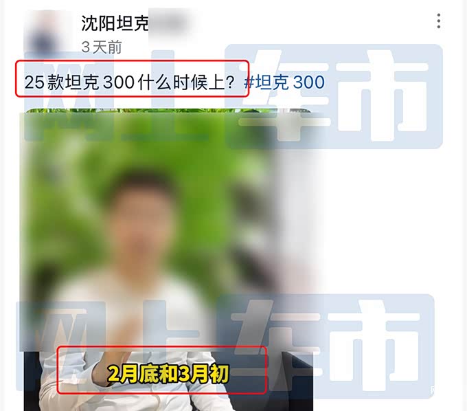 销售透露,2025款坦克300将于2月底3月初上市,之前限量的Hi4-T版本同步推出。