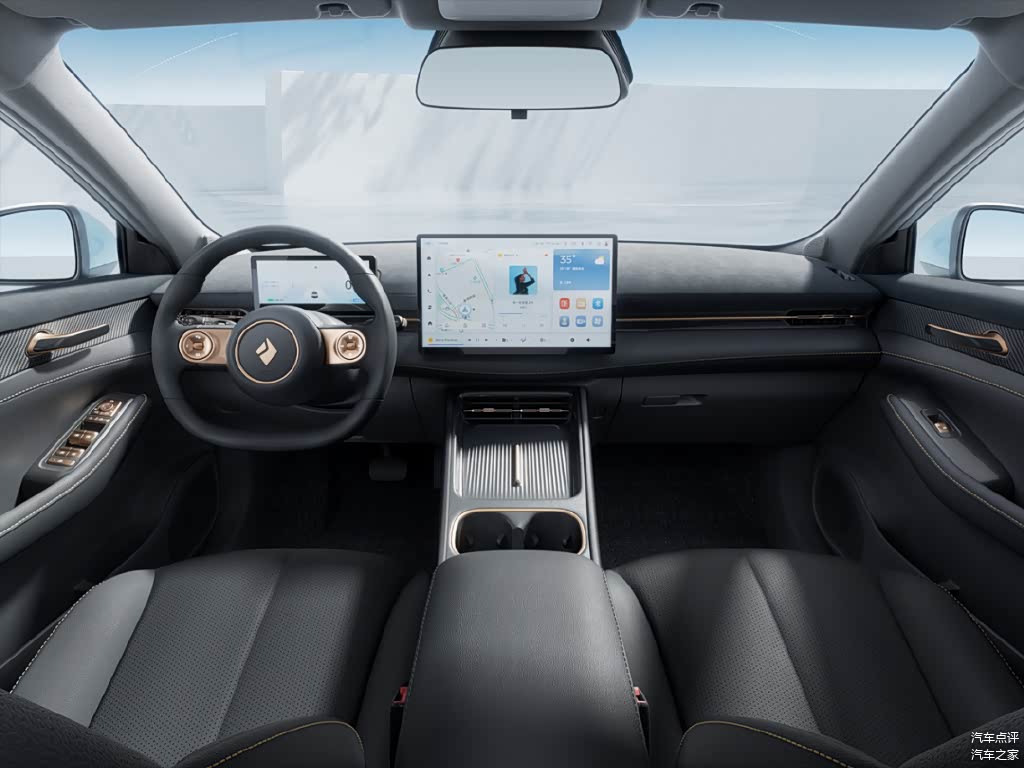 内饰方面,深蓝S07独创的"星环座舱"布局,配备了一块15.6英寸向日葵屏,可随驾驶员位置自动偏转15°。副驾头顶嵌入12.3英寸娱乐屏,支持手势控制与独立蓝牙连接。全车配备5处NVH主动降噪模块,120km/h时速车内噪音仅63分贝,超越同级燃油车水平。
