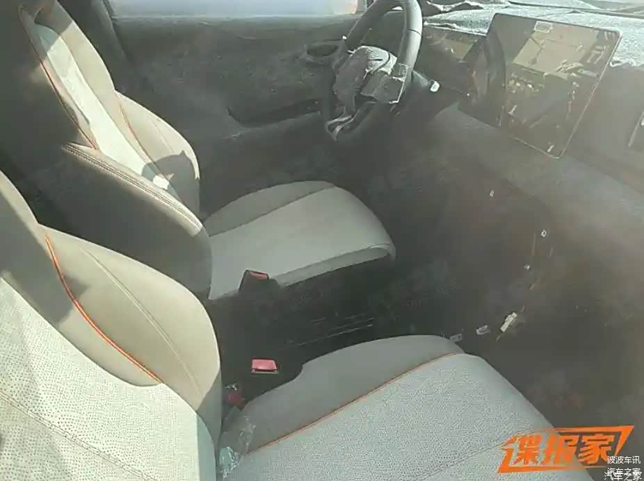在内饰方面,我们可以看到比亚迪海狮05 EV采用的是非常干练的设计语言打造,它采用的是悬浮式效果的大屏,中控台上采用的是阶梯式的风格打造,整体很简约化,它的大屏估计也有旋转功能。新车的方向盘的造型还未曝光,估计会采用家族化的设计语言打造,它的座椅也非常的豪华,包裹性很好,并且有打孔处理,上面的彩色走线和不同材质的包覆形成了比较运动的状态。在动力方面,新车搭载的是140千瓦的电机。
