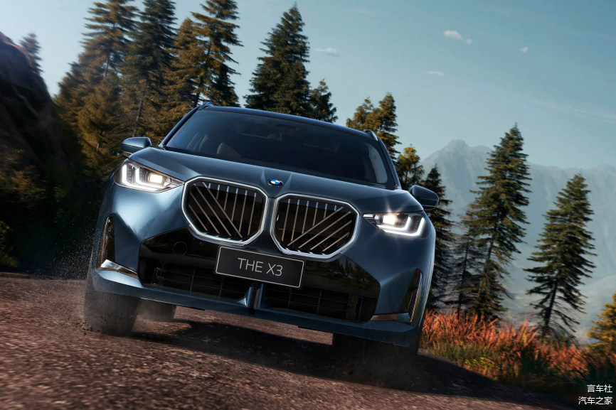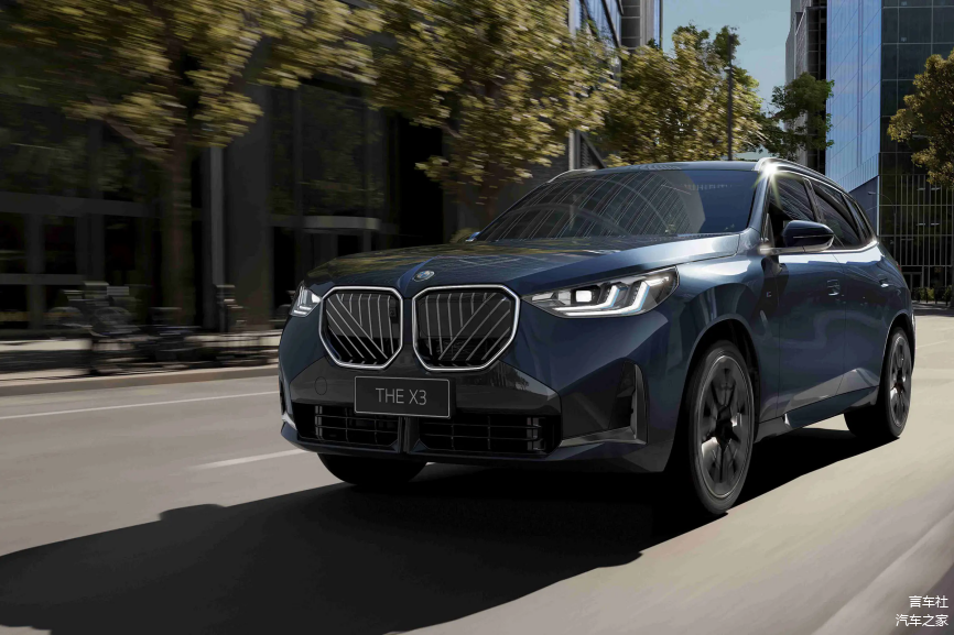 外观方面,国产全新宝马X3的设计更运动了,车身线条非常硬朗。前大灯内部采用了双L设计,并辅以蓝色做点缀,再加上前大灯的轮廓,营造出了很有攻击性的视觉效果。双肾格栅依然在,不过内部的线条更复杂,由竖纹和斜纹组成,而且边缘还有轮廓灯做装饰。下包围呈两段式,整个前脸给人的冲击力还是非常强的。