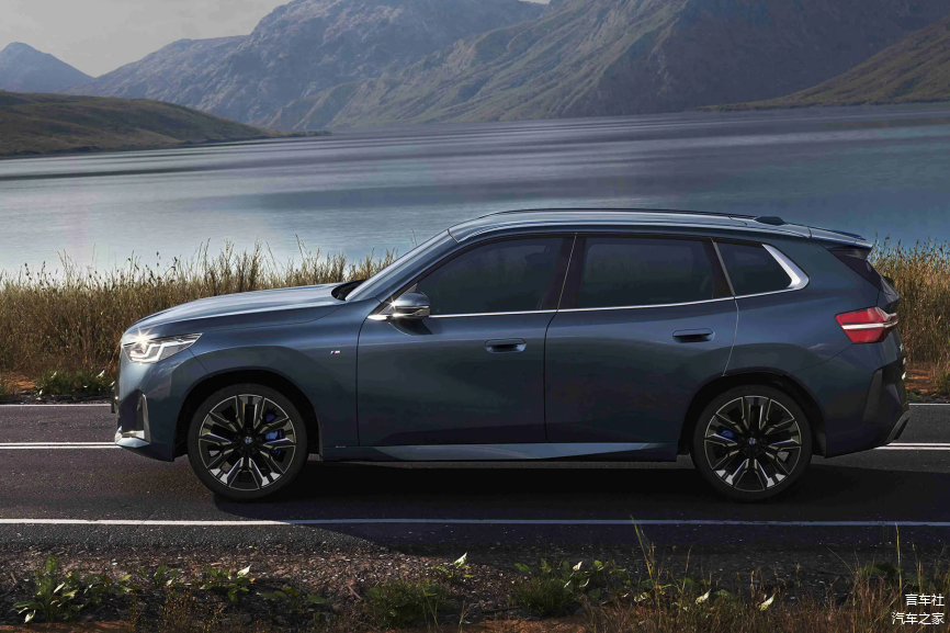 侧面来看,国产全新宝马X3采用了半隐藏式的门把手设计,并提供19英寸、20英寸和21英寸三种尺寸和四种样式的轮毂,其中M运动套件版还会配备高性能刹车卡钳,尾窗保留了霍夫迈斯特弯角设计。尺寸方面,国产全新宝马X3的长宽高分别是4865/1920/1664mm,轴距是2975mm,比现款略有增加,但高度有所下降。整体来说,这台车在空间方面的表现应该会更出色一些。