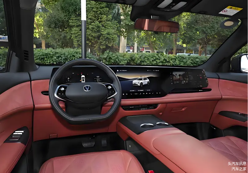 在内饰上,两辆车就完全不同了。长安CS75PLUS是采用的三连屏设计,拥有10.25英寸+14.6英寸+12.3三块屏幕,车机系统支持HiCar、Carlink、T-LINK、360度全景影像,屏幕下方还配备了氛围灯带。整套车机系统也很不错,不管是反应速度还是UI设计都较为出色。只不过可惜的是并没有采用品牌高通8155芯片,这算是一点缺憾。
