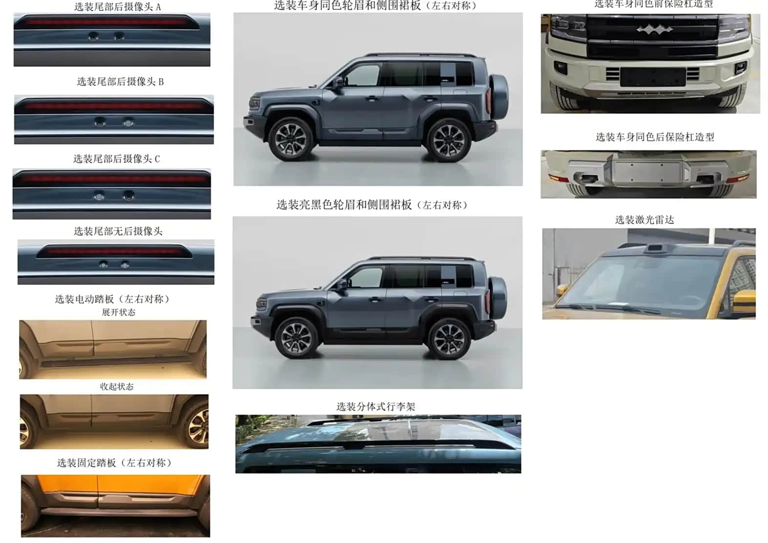 通过对申报图和路试谍照的全面分析,我们发现豹5智驾版在外观设计方面与当前市场上的其他车型基本吻合。不过,该设计对前后保险杠做了微调,采纳了车身同色的方案,并额外提供了车身同色侧裙与轮眉作为可选的配件。