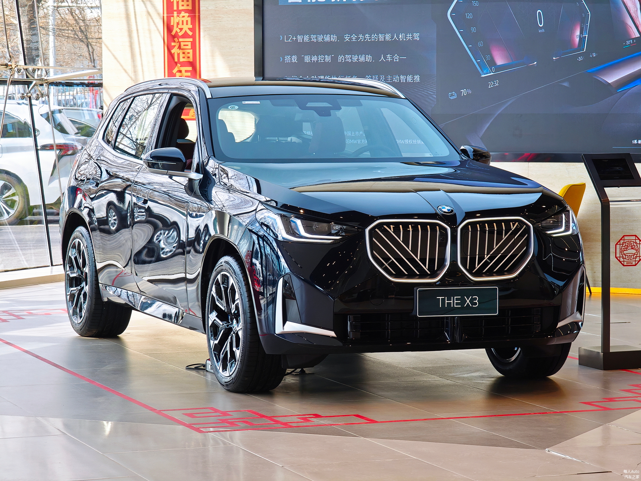 每人Auto走访北京的几家宝马4S店发现,全新X3长轴版展车,基本占据了各门店的C位,但门店悬挂的巨幅海报,还是国产版2系四门轿跑车,并没有全新X3的身影。