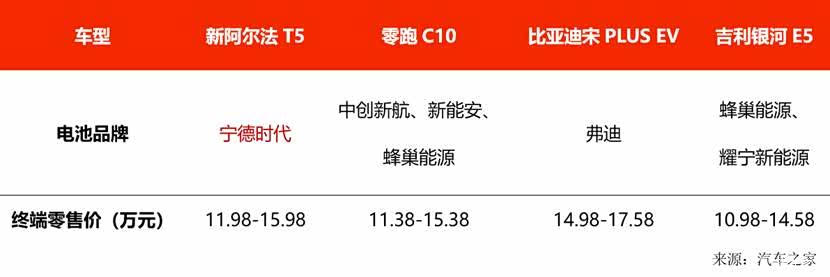 电池作为一款新能源车的核心部件,不仅成本占比整车的三分之一,更是决定了后期使用的耐久性、安全性性。一部好车肯定要匹配优秀的电池,阿尔法T5全系采用宁德时代的电池,想必大家对“宁王”的大名并不陌生,它家的电池安全性、低能耗是有口皆碑的。不过,“好”意味着“贵”,出于成本考虑,11万级的纯电SUV基本很少会全系车型使用宁德时代的电池。阿尔法T5就是那“少数派”,不玩高低配混搭,不让消费者不开盲盒,入门到顶配放心大胆的选就完了。