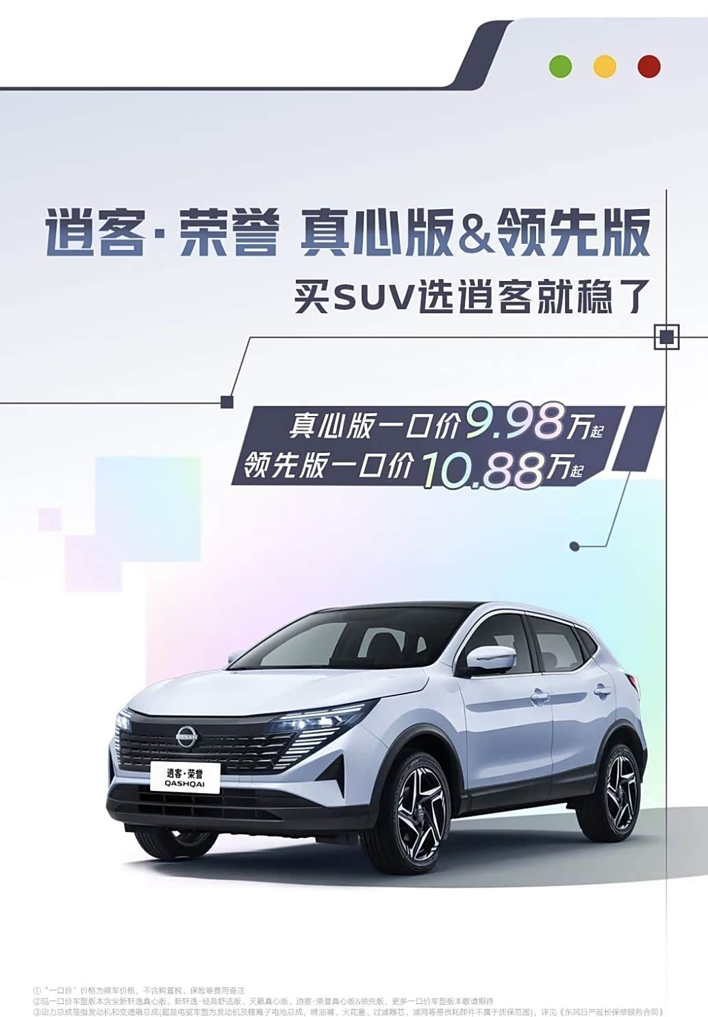 逍客真心版的一口价为9.98万起,轩逸领先版的一口价为10.88万起,天籁的一口价为12.78万起,而且和轩逸一样,天籁也可享动力总成终身质保。比较特殊的是逍客,它的价格虽然下降了,但是在维保方面却没有跟上。