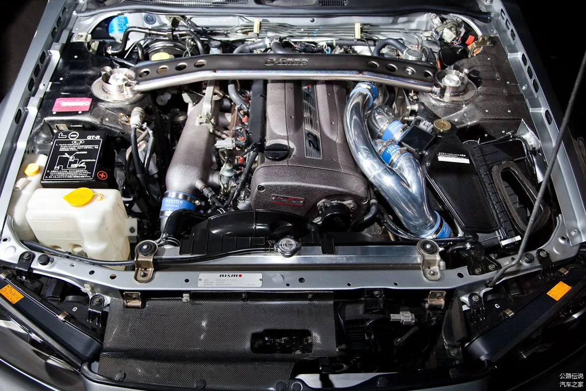 最重要是引擎盖底下,据说这副引擎源自于同期的GT500赛车,扩缸到2.8,活塞、连杆、中缸都换了强化件,然后调到500匹。
