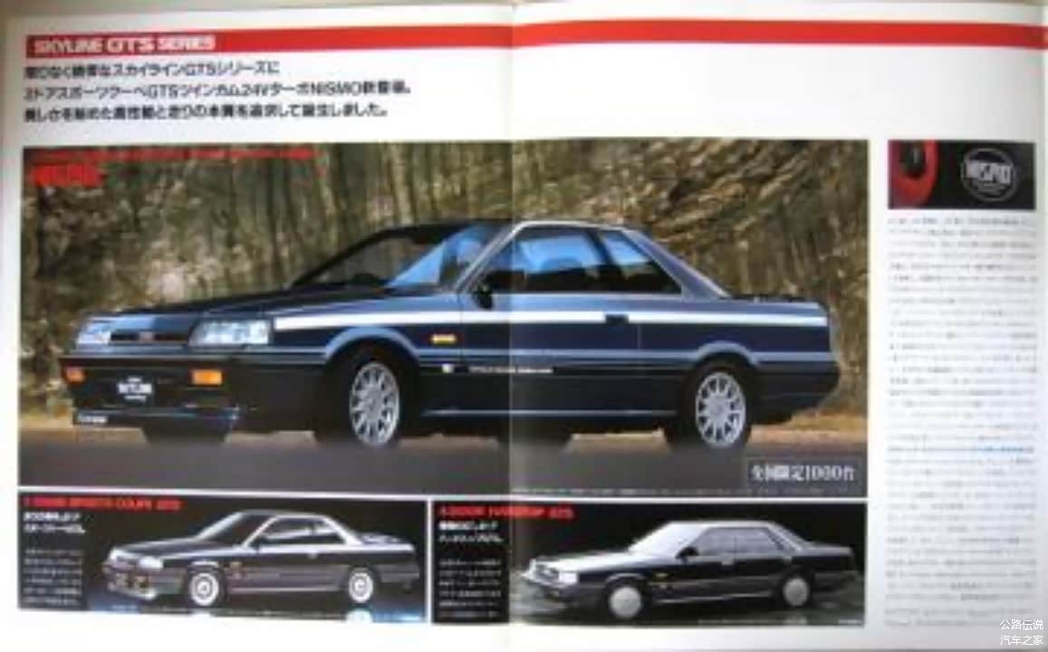 到了85年,就推出了第一款量产车,Skyline GTS Nismo,代号R31。这代Skyline是第一次用RB系列的直列六缸引擎,180匹,零百加速7.9秒,和普通版一模一样啊。没错啊,因为第一次出量产车,也不敢太激进。说就说是Nismo版本,但性能上就不搞他了,改一下包围、内饰、换换方向盘、运动座椅这些,主打一个营造氛围、提升情绪价值,内心增加5匹马力,然后在日本限量发售了1000辆。