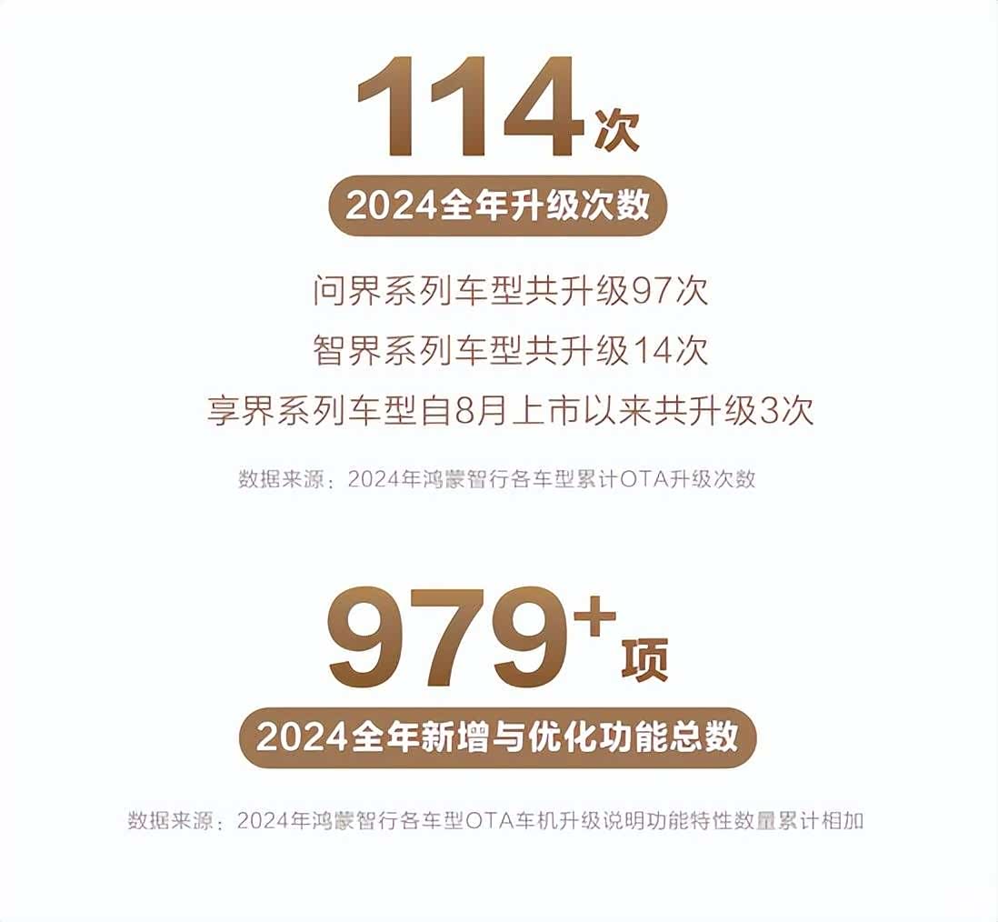 反观问界M9,去年鸿蒙系统OTA了114次,