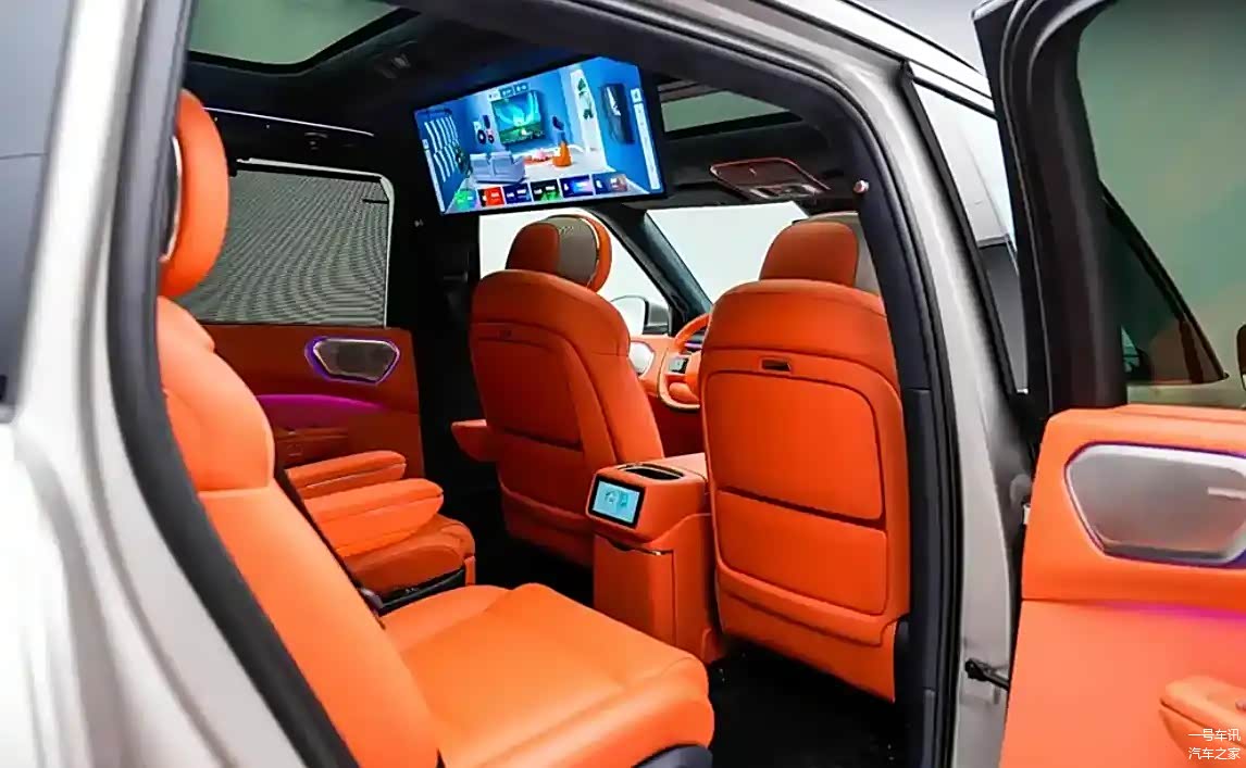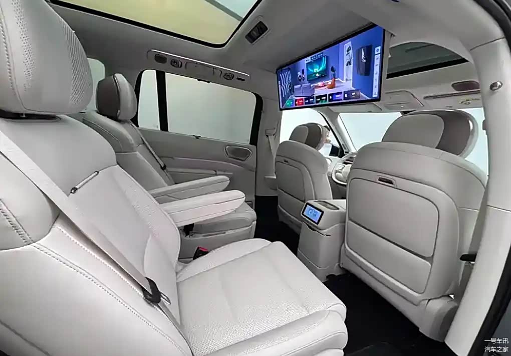 领克900在内饰设计上,选用了拂晓霞光、暖沙午阳和晓夜星河这三种颜色组合,并融合了水晶般的装饰效果、仿麂皮织物/PU和Nappa真皮等多种材质,营造出一种奢华的氛围。该设备配备了30英寸的6K一体式双联屏、大尺寸的HUD抬头显示、细条状全液晶仪表屏和双8295座舱芯片等高端配置,为驾驶员和乘客提供了卓越的科技体验。这款汽车的设计布局遵循了2+2+2的六座布局模式。在这其中,第二排的双独立座椅不仅配备了电动调节和电动腿托,还具备通风、加热和按摩等多种功能,并且还支持旋转。另外,第三排的座椅还配备了电动调整和按摩功能。座椅一旦被推翻,它能为旅客提供超出2米的后备箱容量。除此之外,车辆内部还装备了可折叠的小桌板和吸顶娱乐屏等多项功能,极大地提升了乘客的乘坐舒适度。