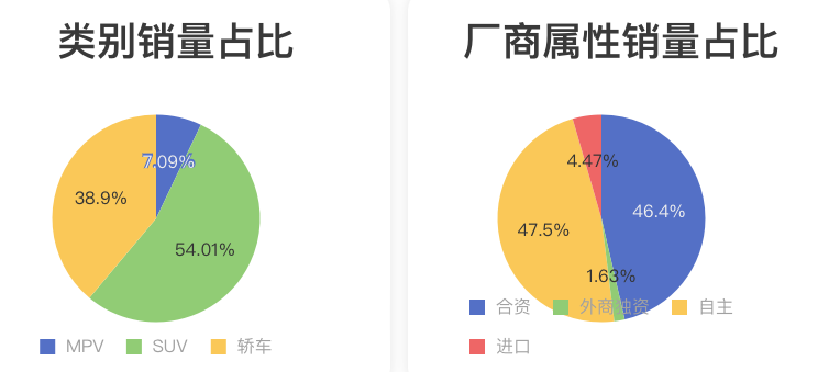 其中,轿车销量为5,836辆,环比下降44.01%,同比下降18.35%。SUV销量为8,103辆,环比下降45.10%,同比下降12.79%。MPV销量为1,064辆,环比下降40.53%,同比下降6.91%。
