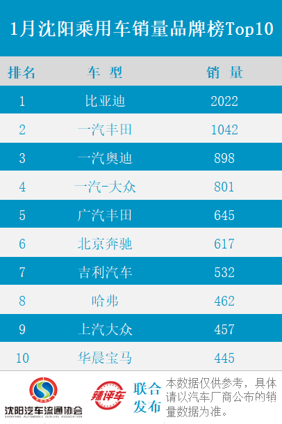 沈阳汽车流通协会与辣评车新媒体平台联合发布了沈阳乘用车市场1月整体运行概况,本次报告涵盖了总体销量数据,车型大类占比,乘用车市场分析以及新能源乘用车销量的具体数据,具体如下: