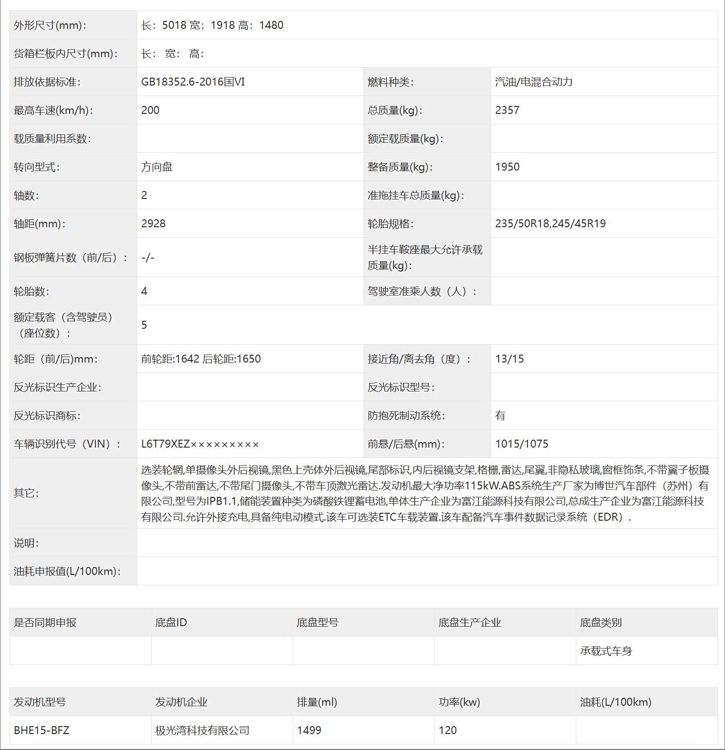 当我第一次在工信部看到吉利银河星耀8的申报信息时,不得不说它的外观设计给我留下了深刻印象。前脸采用封闭式格栅设计,整体风格显得简洁而不失大气。日行灯的造型犀利,并通过一条贯穿式的黑色饰条连接,视觉上拉宽了车头,让整车看起来更加稳重。远近光灯则被巧妙地安置在格栅两侧靠下的位置,设计相当有个性。