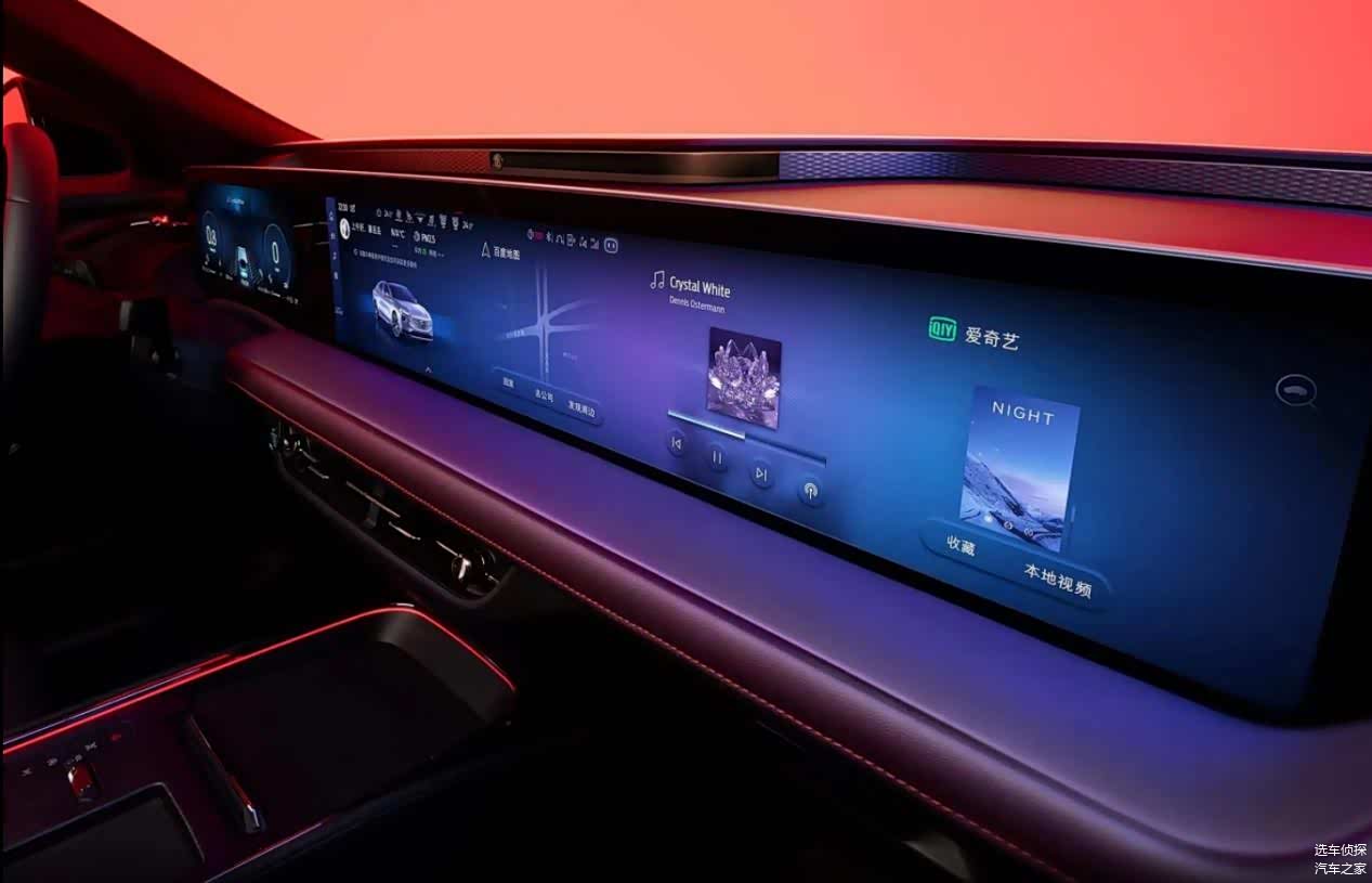 座舱娱乐一直是传统燃油车的短板,但新一代蒙迪欧并没有妥协,屏幕尺寸看齐新势力,采用1.1米宽的“带鱼屏”,整合了12.3英寸数字仪表盘和27英寸4K中控屏,就像电影院的巨幕,显示细节丰富,内置SYNC®+2.0智行互联系统,标配语音控制、OTA升级、WIfi热线、手机APP远程控制等,高配车型带有面部识别,但芯片为高通820A,相较于8155等算力稍显落伍,属于上一代的主流车载芯片。