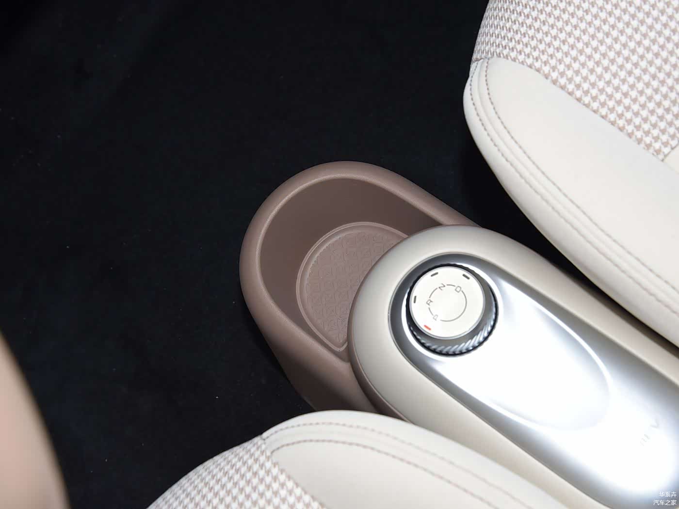 主副驾连通,方便从两侧下车,也是城市里这种小车的优势。采用旋钮式换挡,前方设计有杯架。