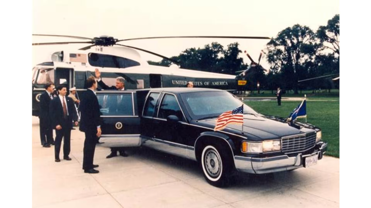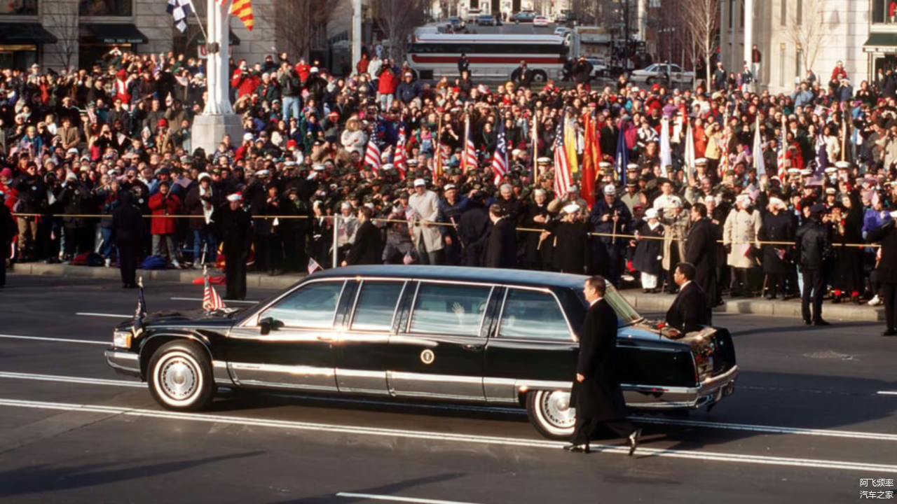 克林顿使用的这辆凯迪拉克,是通用汽车高级工程部门与中情局联手打造,是一款重达5.44吨的防弹车。动力部分,这辆车搭载的是由赛车传奇人物杰克·罗什(Jack Roush)和他的团队手工制作的454立方英寸(7.4升)V8发动机提供动力。