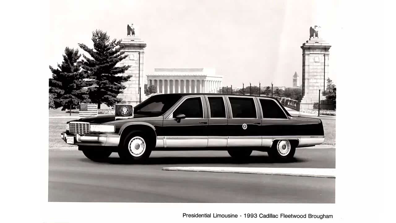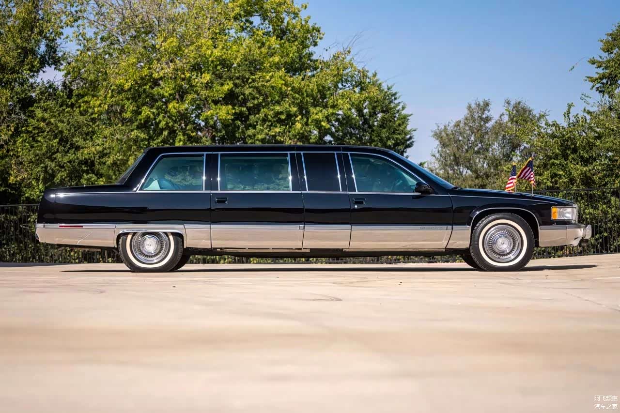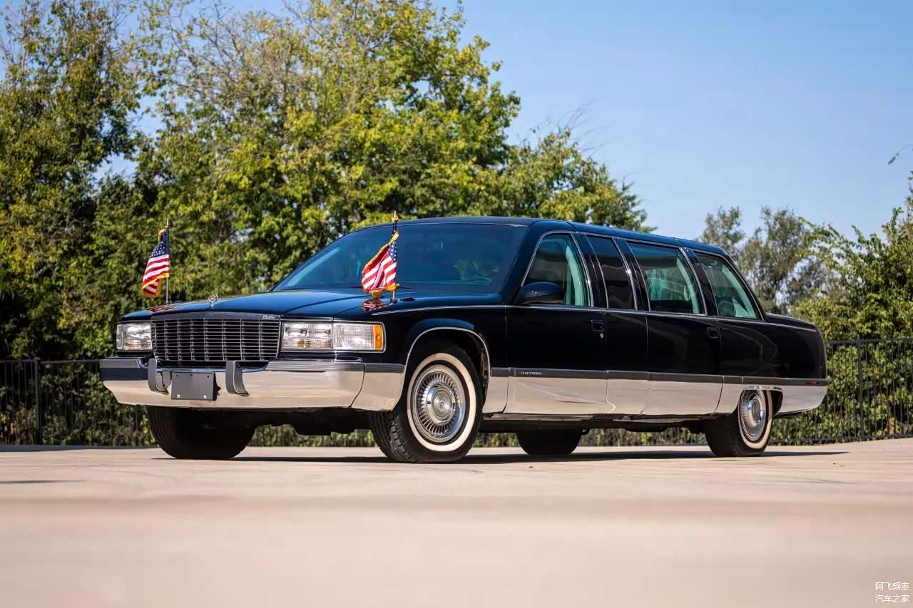 这款车是基于凯迪拉克Fleetwood(弗雷特·伍德)打造,生产周期在1993年至1996年,原车长5717mm,总统版车型在原车的基础上进行了加长1143mm,所以,这款车的总长达到了6860mm,轴距达到了4267mm,车高也增加了76mm。