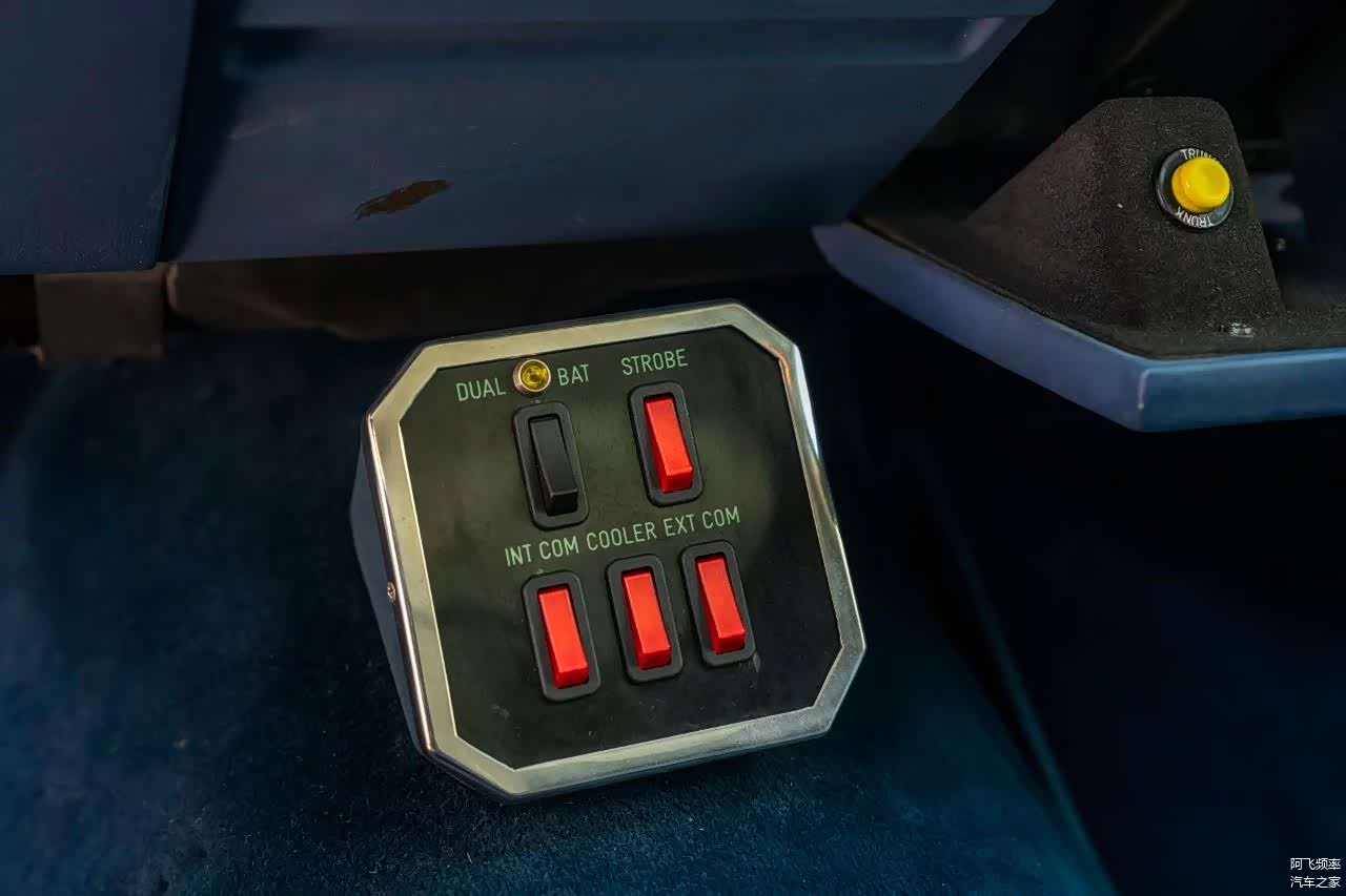 此外,手套箱内还配备了一套控制面板,其上的按钮多数用于操控通讯功能。其中,某些按钮的功能显得颇为神秘,而旁边更配备了对讲机,以便与其他车辆保持联系。值得一提的是,面板旁边还有个非常醒目的黄色按钮,边缘刻有“TRUNK”字样,具体功能不得而知。