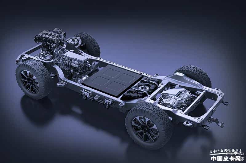 长安猎手这台车虽然是增程皮卡,但它也是一台解耦四驱的新能源皮卡,前后桥都是独立的电机驱动。而这个特点在吉利雷达地平线/金刚的四驱版上也基本一样,同样都是前后桥独立电机达到四驱的状态,中部并没有传动轴。