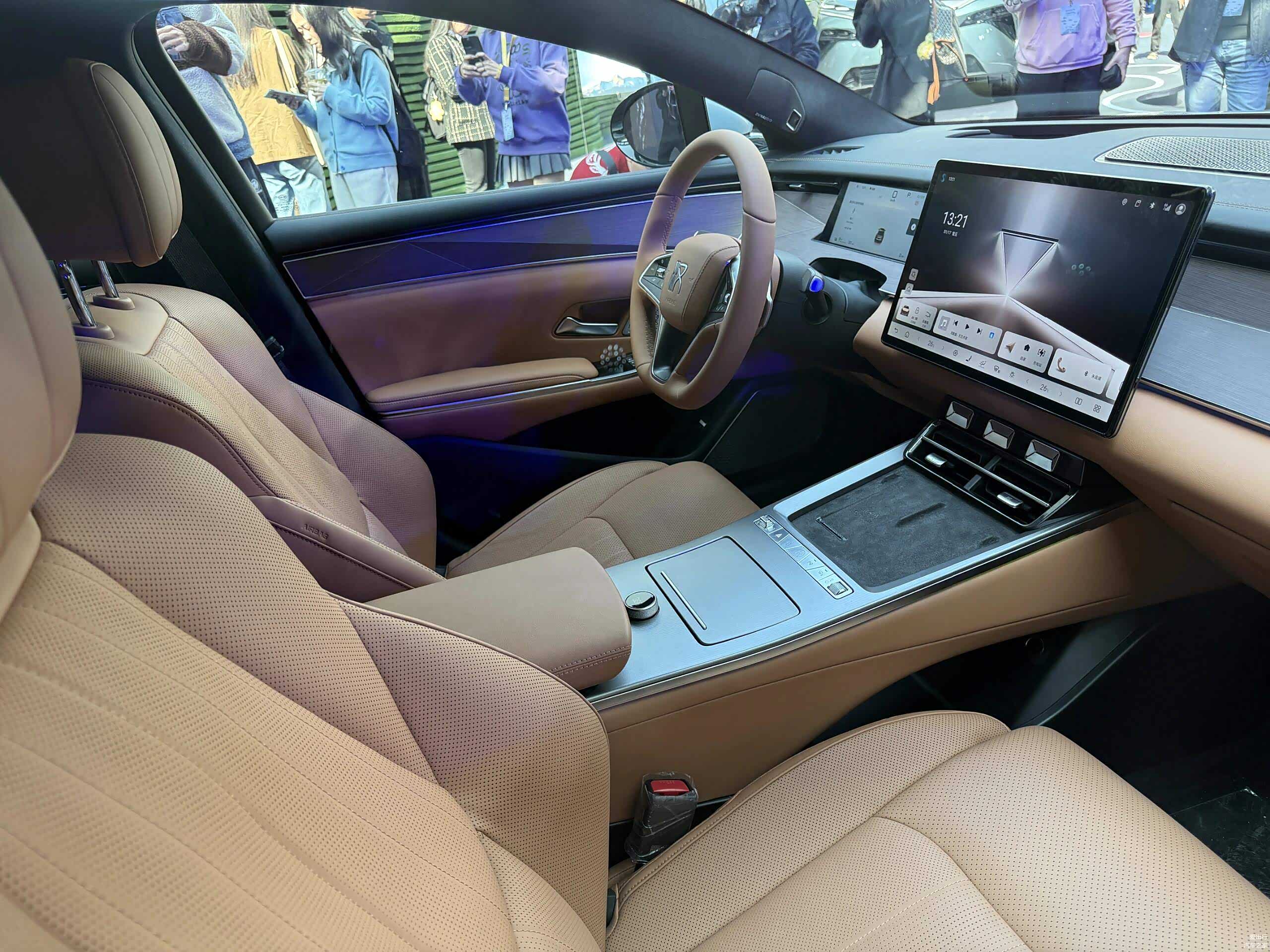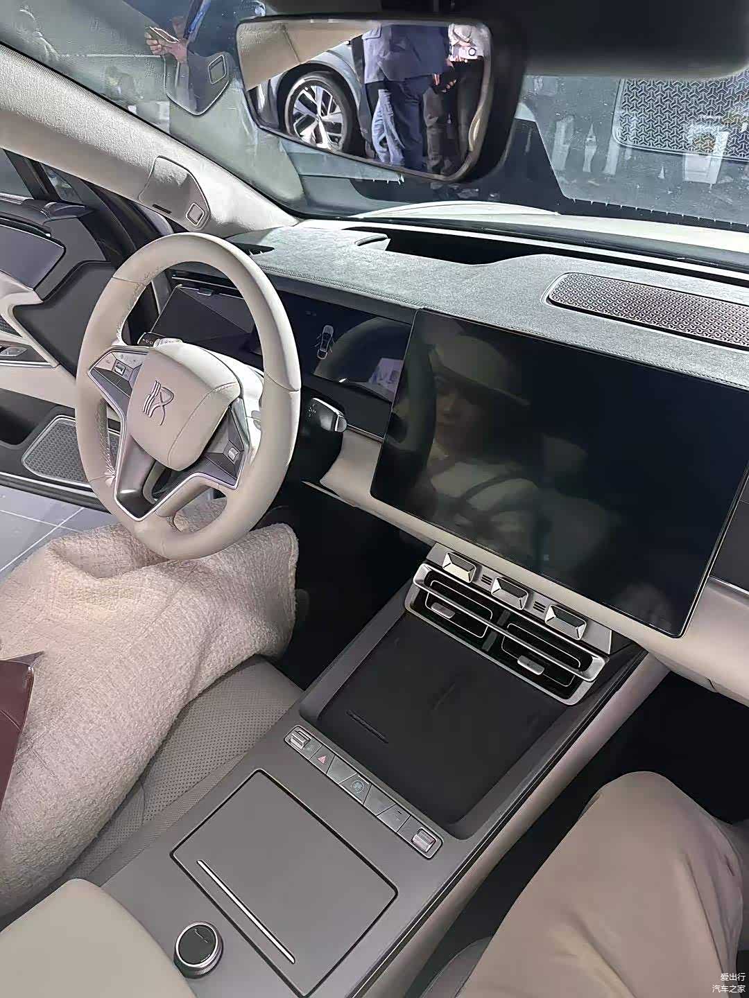 值得一提的是,汉L换装了全新的三幅式多功能方向盘和电子怀挡设计,使得驾驶操作更加简洁方便。副仪表台处依次配备了香氛系统、50W手机无线充电面板、一排物理按键以及车载冷暖冰箱等实用配置,进一步提升了车辆的实用性和舒适性。