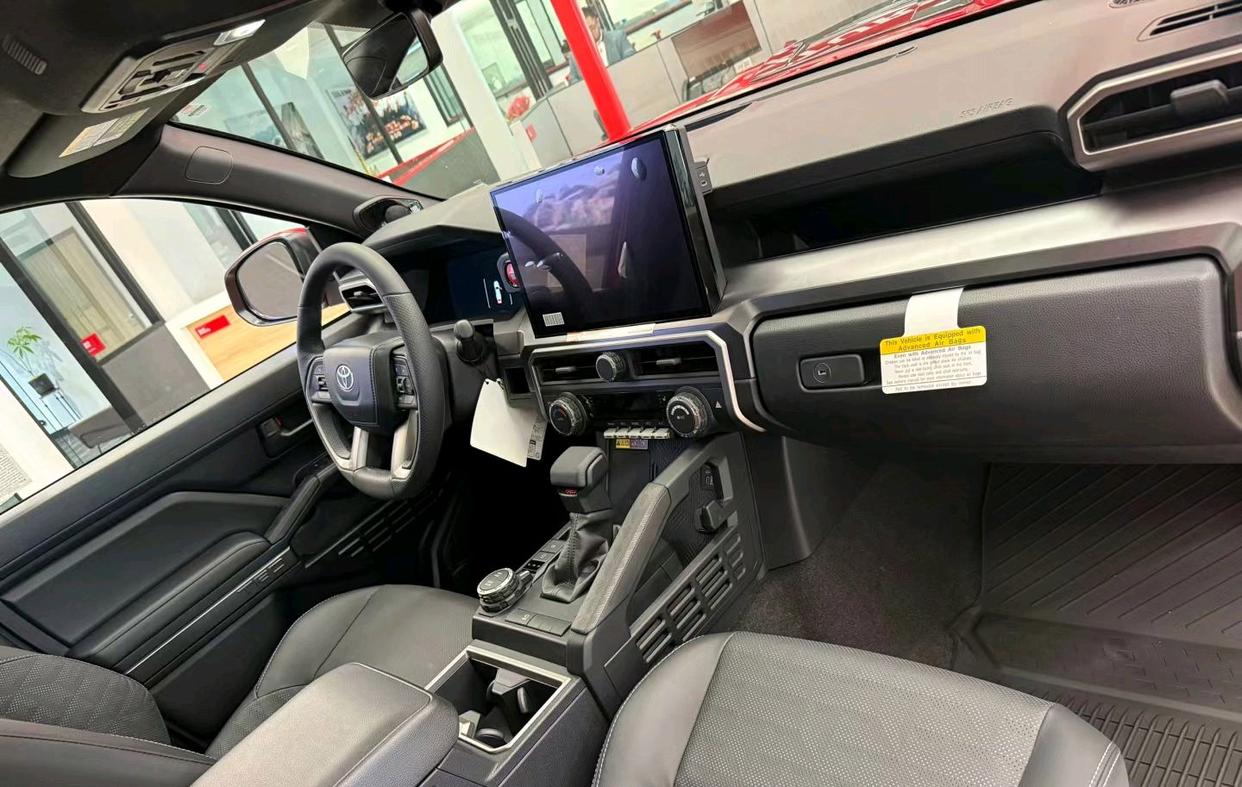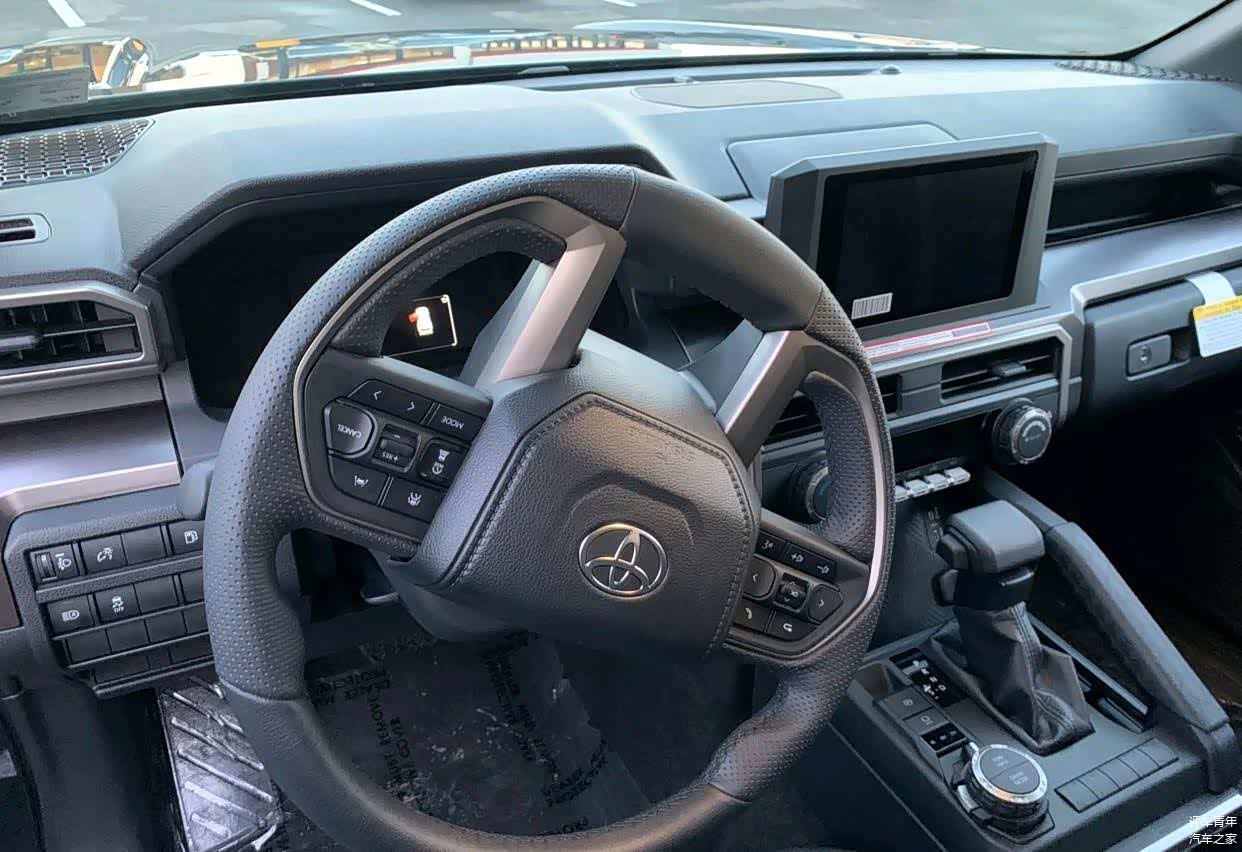 作为一款纯正的硬派越野车,其内饰风格还是紧跟时间的,科技感与豪华感都得到了展现,左侧是皮革材质包裹的四幅式多功能方向盘,前方12.3英寸液晶仪表盘和中控14英寸悬浮式显示屏,并配备了最新的丰田信息娱乐系统。