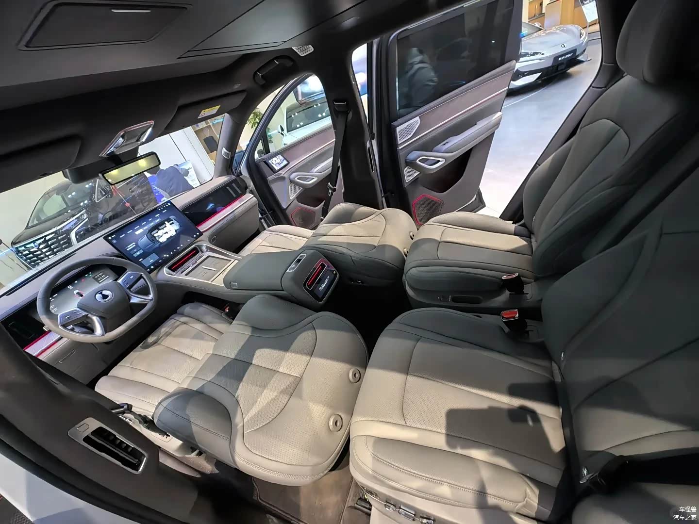 在座椅的设计方面,这款新车采用了2+2+2的六座配置,为乘客提供了灵活多变的空间,能够满足各种不同的出行需求。从实用性方面考虑,这款新车配备了后排小桌板、遮阳帘,以及车内的冷暖冰箱等设施。