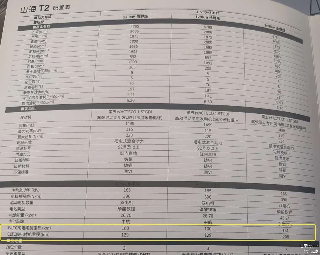 捷途山海系列车配置表上同时列出CLTC纯电续航里程和WLTC纯电续航里程