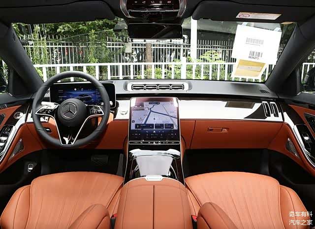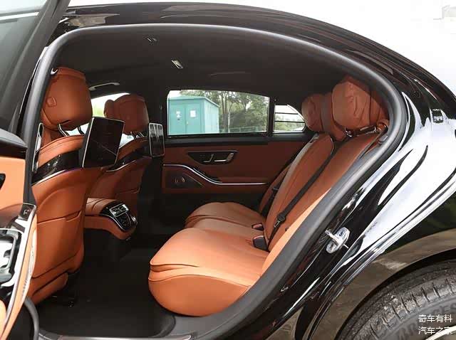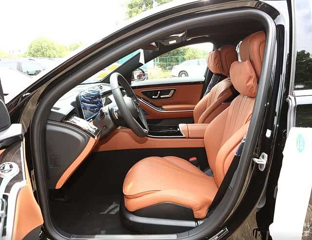 内部,依然是豪华与科技相结合的设计风格,并采用了大量真皮软包和环绕氛围灯,营造出奢华的气场。同时,配备了12.3英寸仪表盘和12.8英寸中控屏,搭载了MBUX车载智能系统,新增了语音唤醒功能。此外,还配有后排独立空调、空气净化器、64色氛围灯、柏林之声音响、抬头显示、方向盘记忆、后排液晶屏等豪华配置。