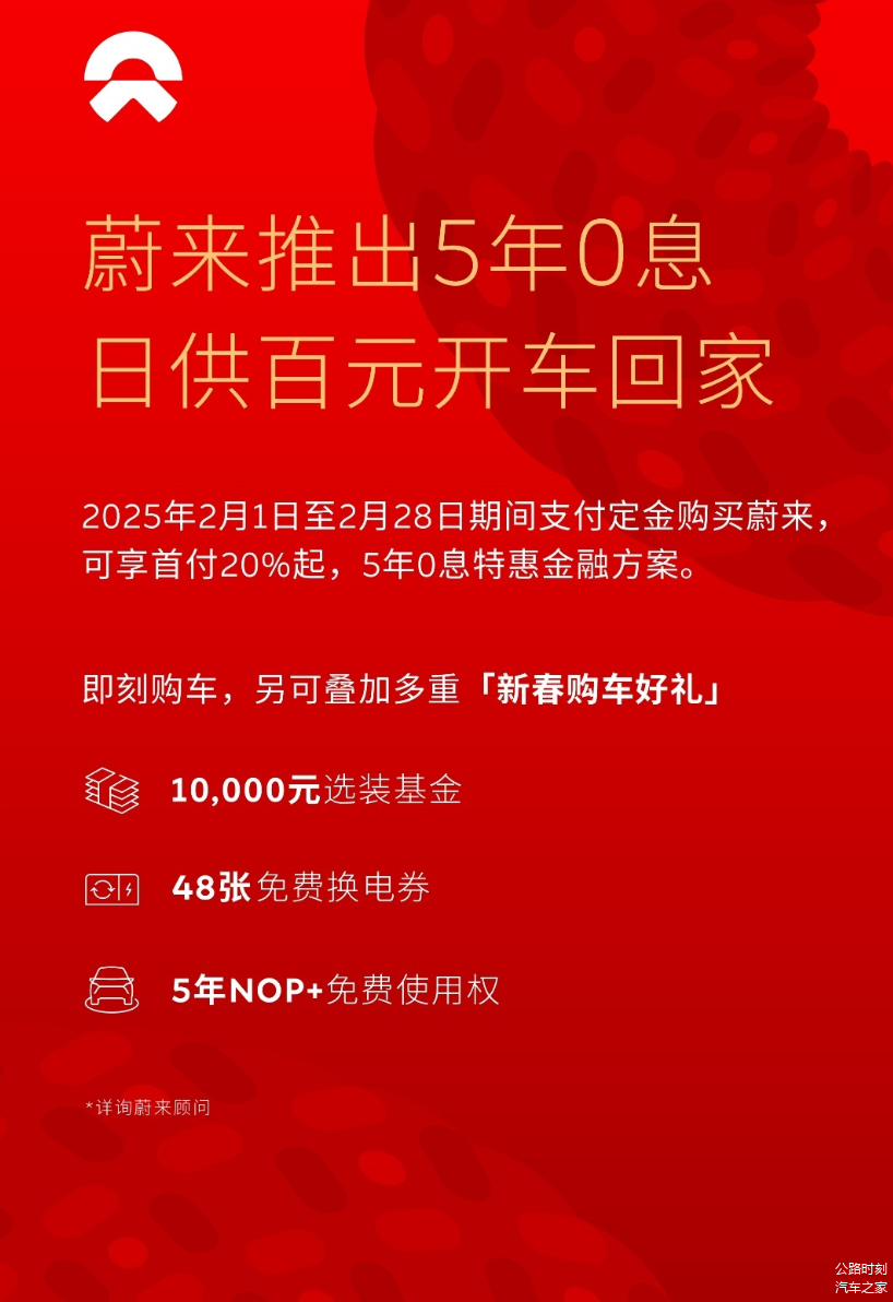 另外,用户在此期间购车,还可叠加享受1万元选装基金、价值4800元的48张免费换电券、5年NOP+免费使用权在内的多重新春购车好礼。2月28日期间开票购车的用户,如因新车开票日期早于2025年政府置换补贴政策要求时间,导致用户无法申请2025年政府置换补贴的,蔚来还将通过等额积分的形式,进行补贴兜底。