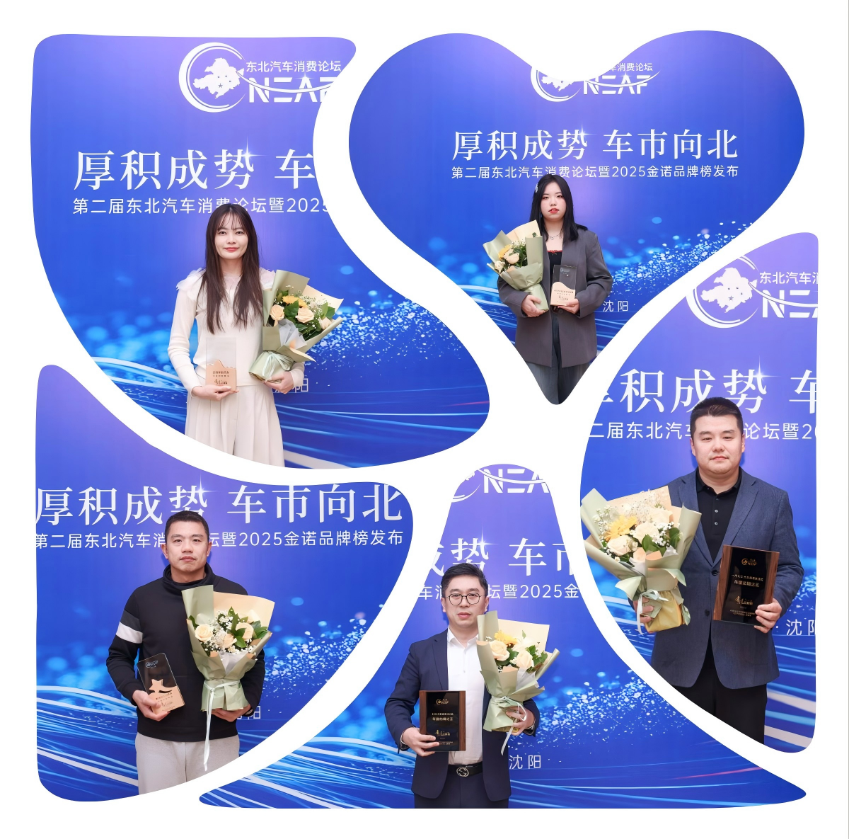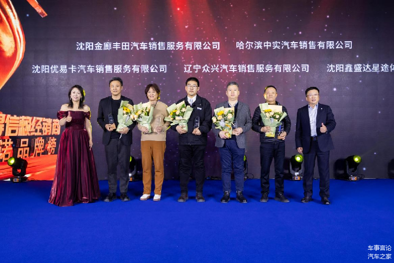 沈阳优易卡汽车销售服务有限公司、辽宁众兴汽车销售服务有限公司、哈尔滨中实汽车销售有限公司、沈阳鑫盛达星途体验中心、沈阳金廊丰田汽车销售服务有限公司年度值得信赖经销商。