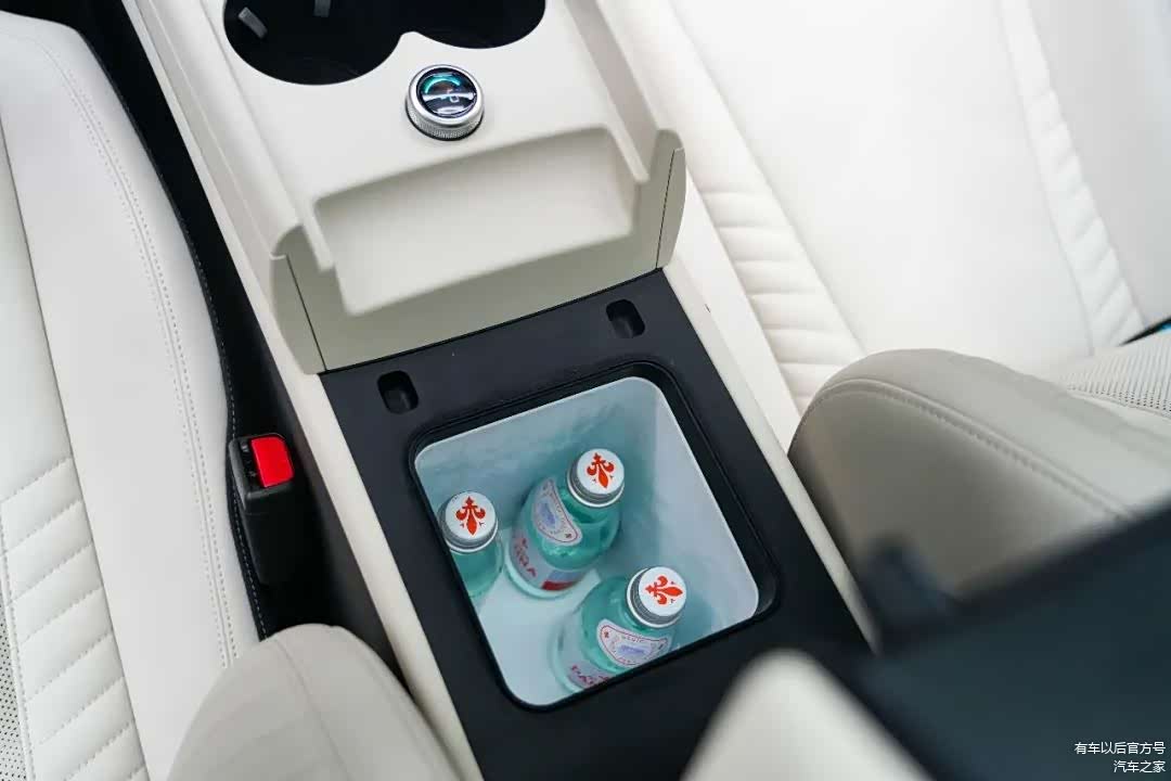 车内配置同样亮眼:HUD抬头显示、50瓦风冷无线充电、DiLink 100车机系统(UI优化升级,四音区语音识别)、标配车载压缩机冰箱(支持-6℃至50℃温控,可容纳4瓶250ml饮料)。