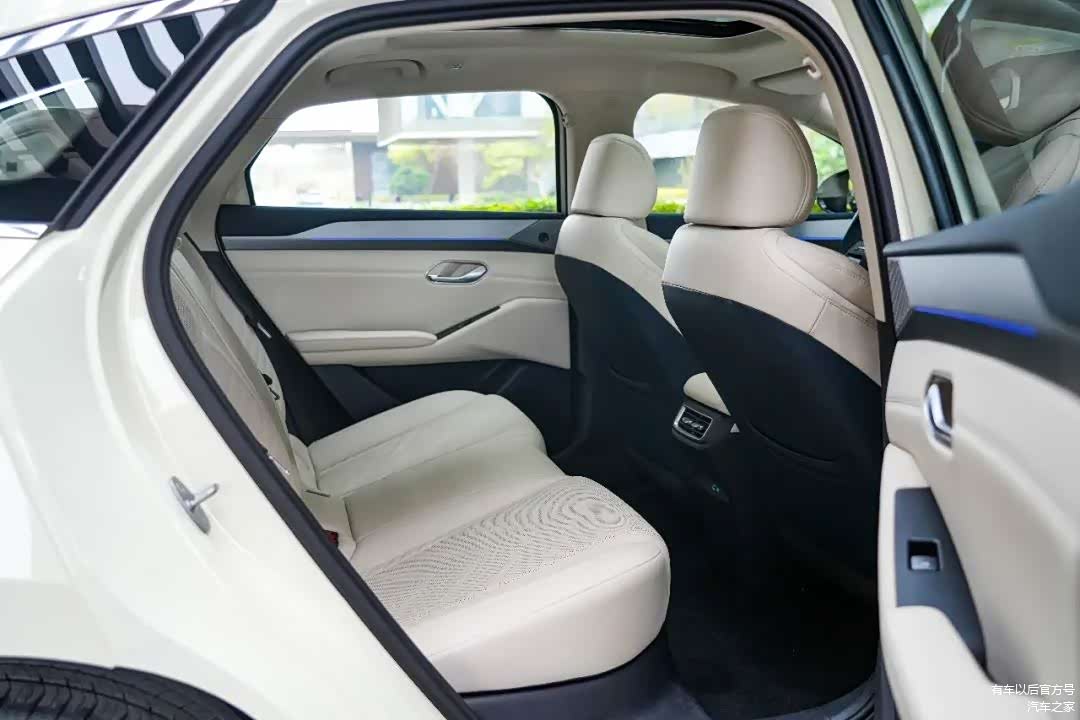 对于1.76米身高的乘客,秦L EV后排腿部空间约一拳三指。纯平地板、足够长的坐垫以及可伸入前排座椅下方的脚部空间,也在一定程度上提升了后排乘坐舒适度。