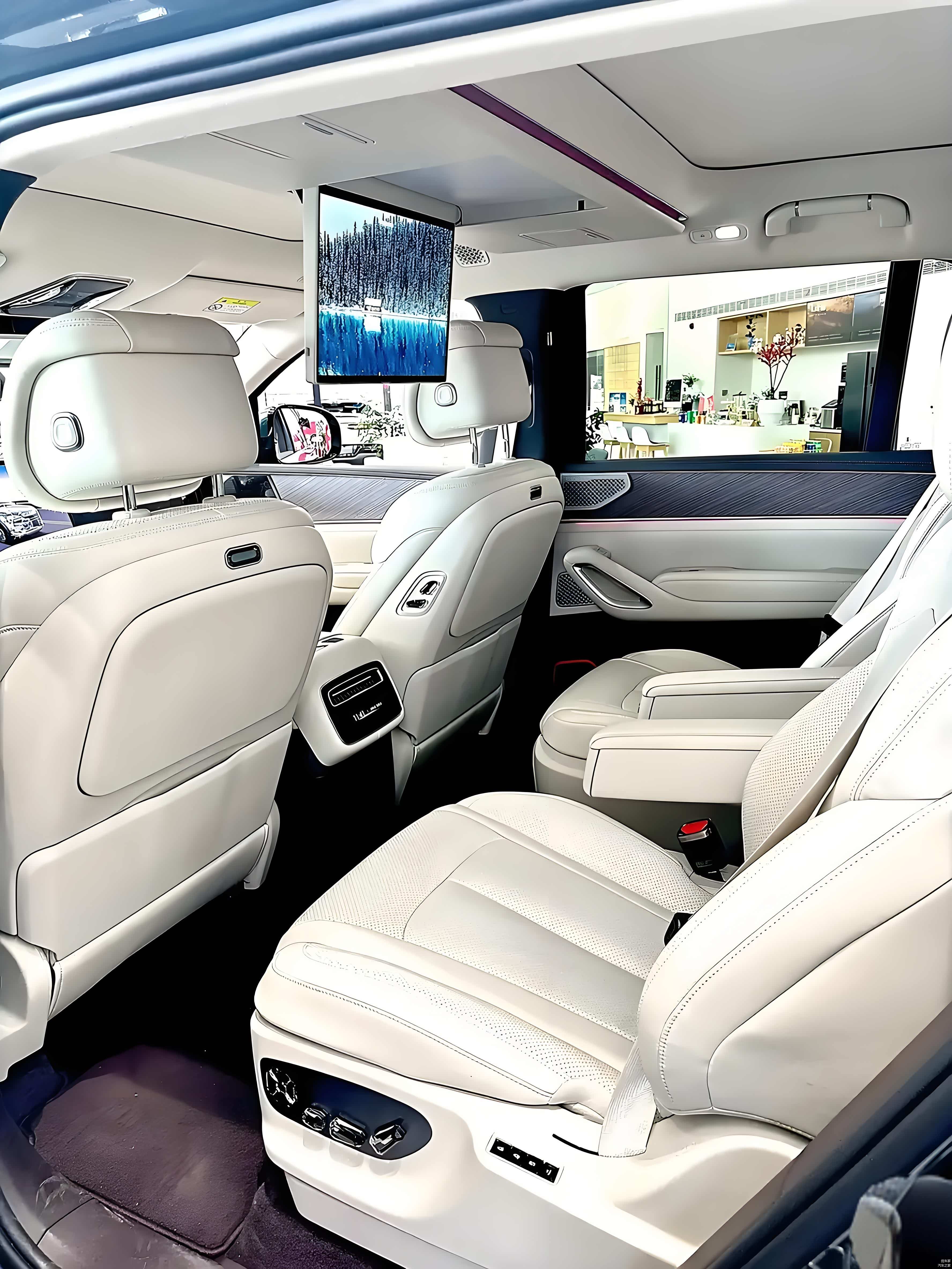 车内的空间表现堪称惊艳。第二排配备了两个独立的航空座椅,拥有14向电动调节、电动双腿托(4向调节)、双桌板以及双50W无线充电功能,还支持左右横移联动调节,不仅方便第三排乘客进出,对于有小孩的家庭来说,更便于家长照顾孩子。第二排座椅靠背还能一键躺平,临时休息非常方便。第三排座椅同样出色,配备了六向电动调节、超宽扶手以及座垫抬升功能,还有三排侧窗遮阳帘,保障了第三排乘客的舒适性和隐私性。官方宣称的800 +种座椅组合也十分有趣,通过一键调节,就能轻松切换私享影院、露营大床、舒享四人出行、全家动员等模式,满足不同场景的需求。